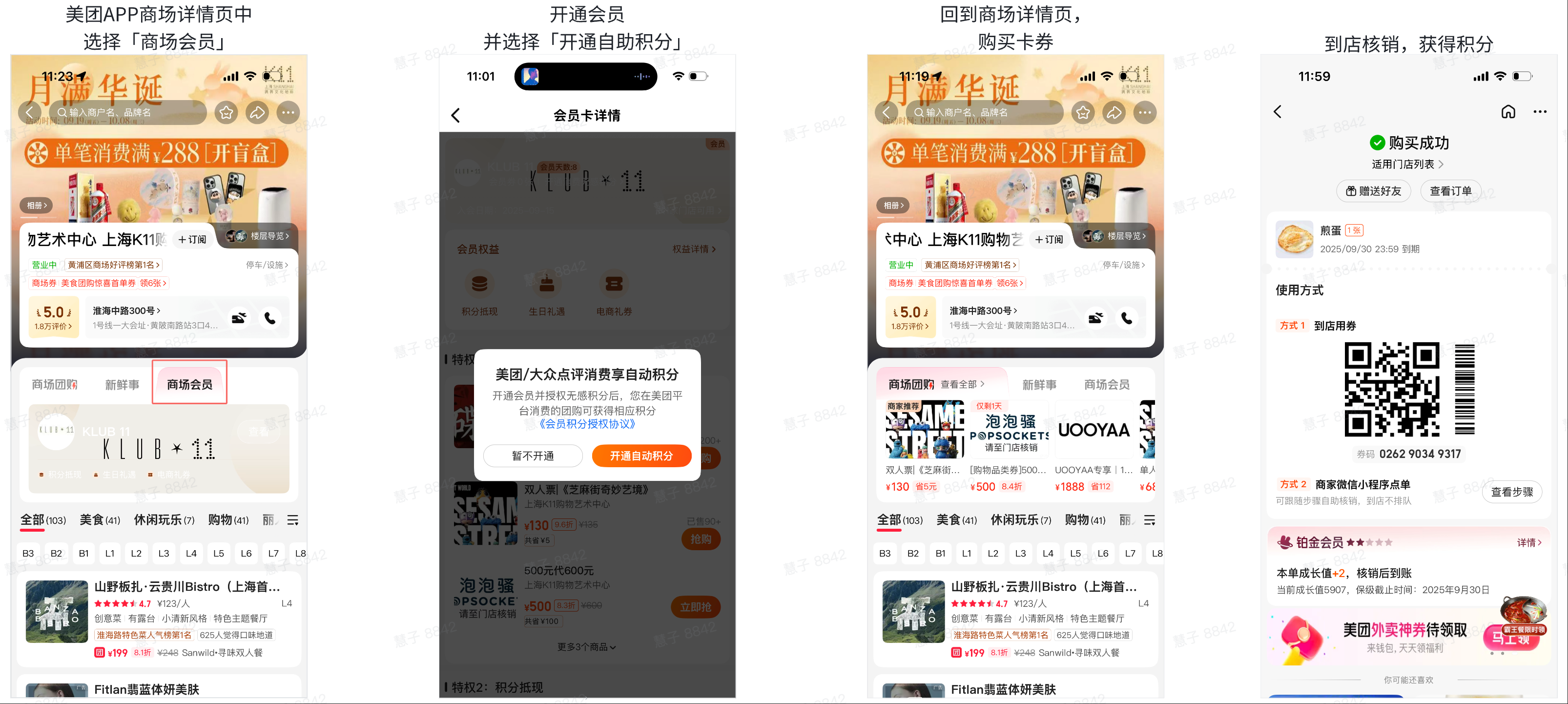 - 在美团APP商场详情页中,开通商场会员,并选择「开通自助积分」