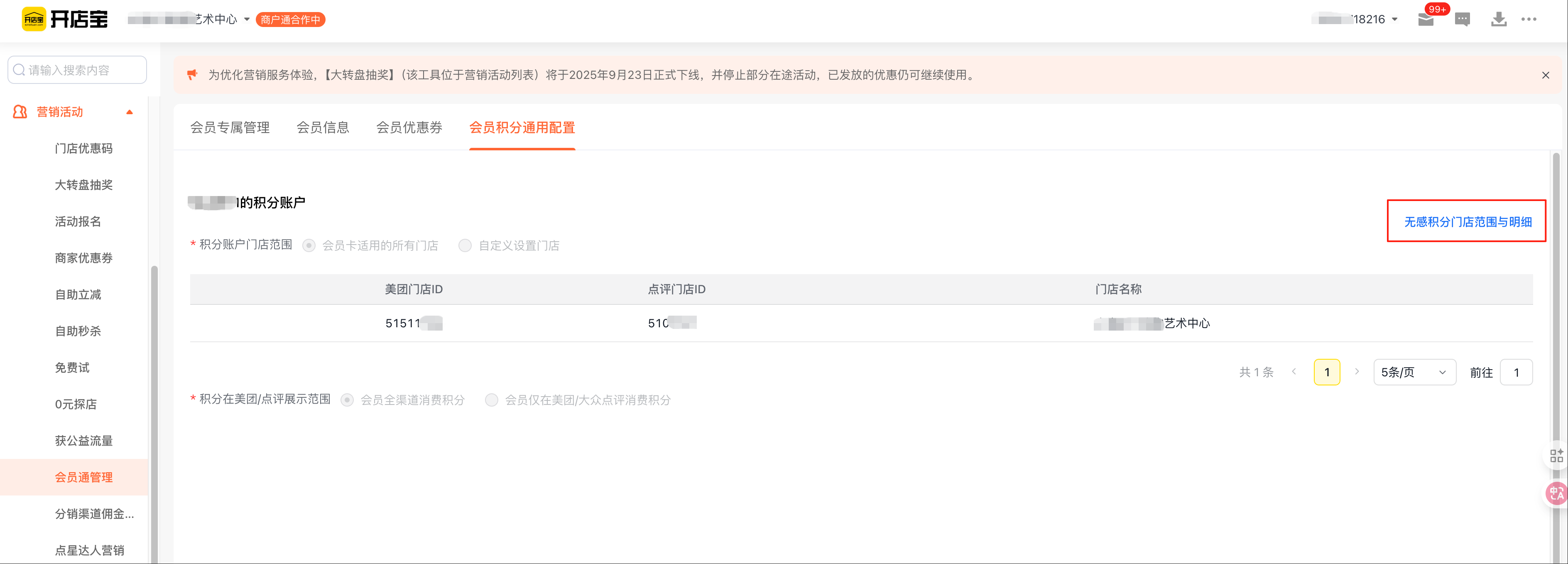 操作路径:美团开店宝PC——营销活动——会员通管理——会员积分通用配置