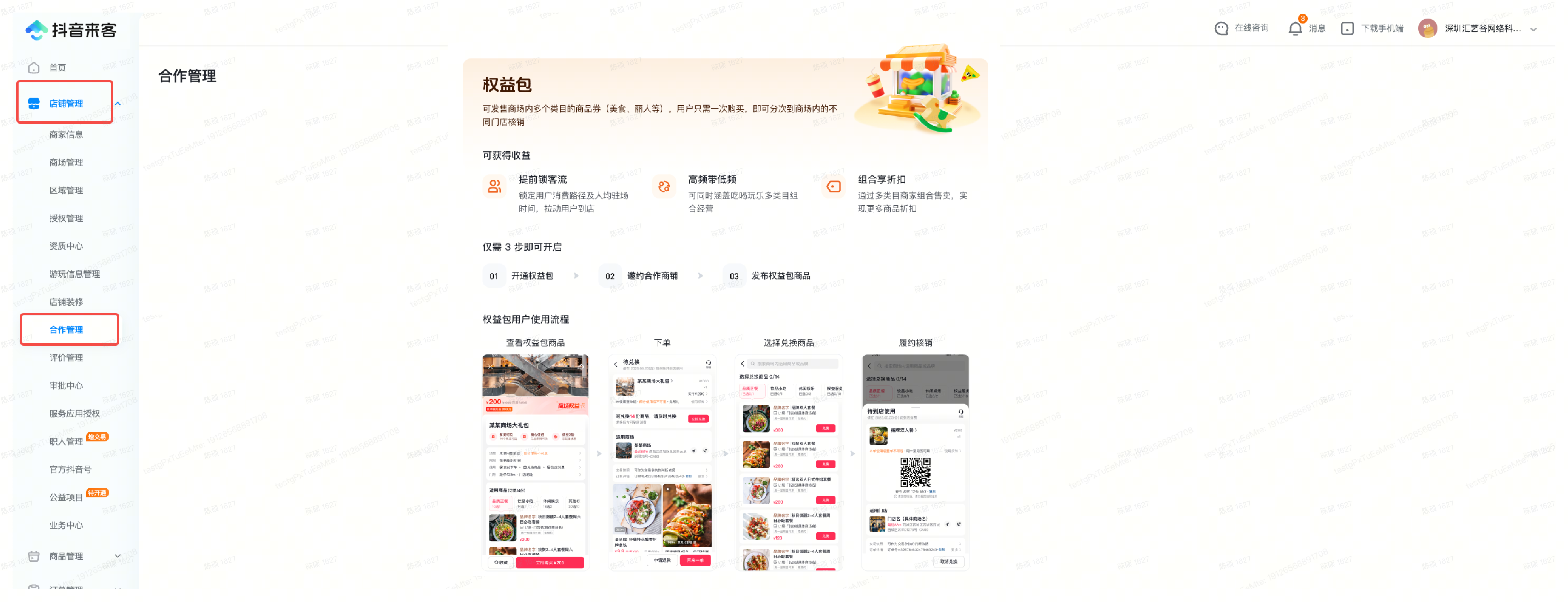 操作路径:来客后台——店铺管理——合作管理,开通权益包