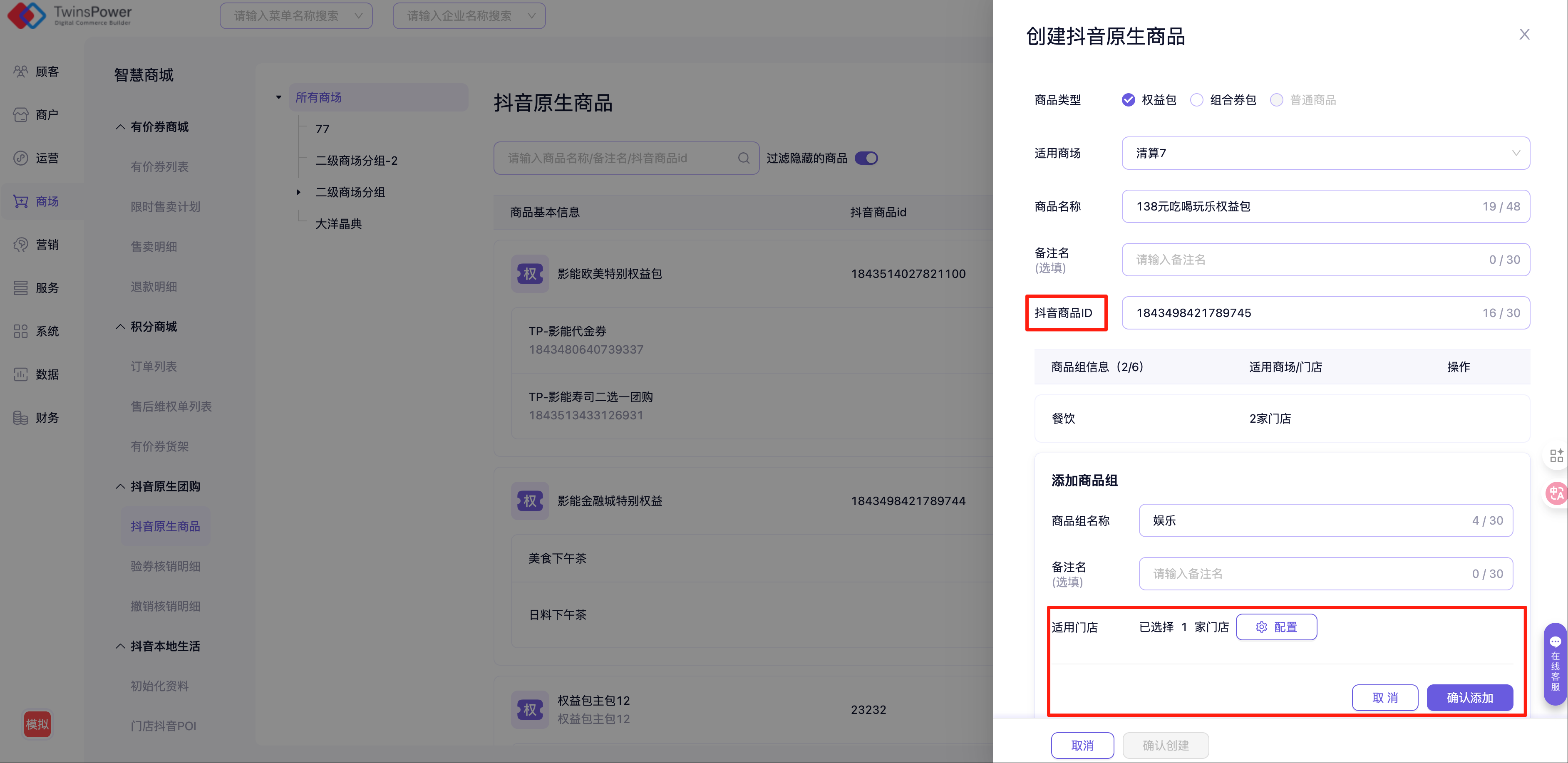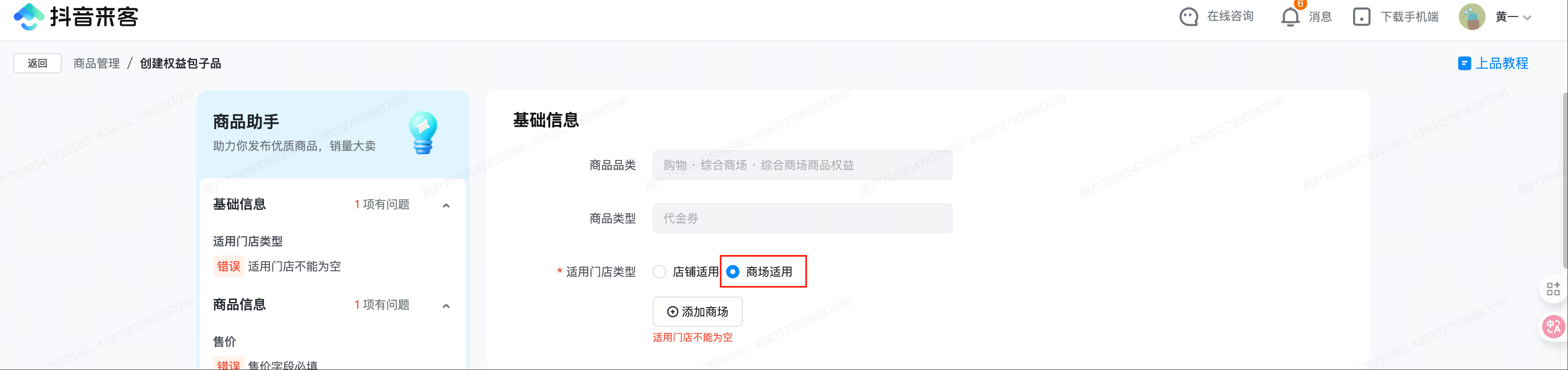 - 商品类型:固定选择「商场权益包」