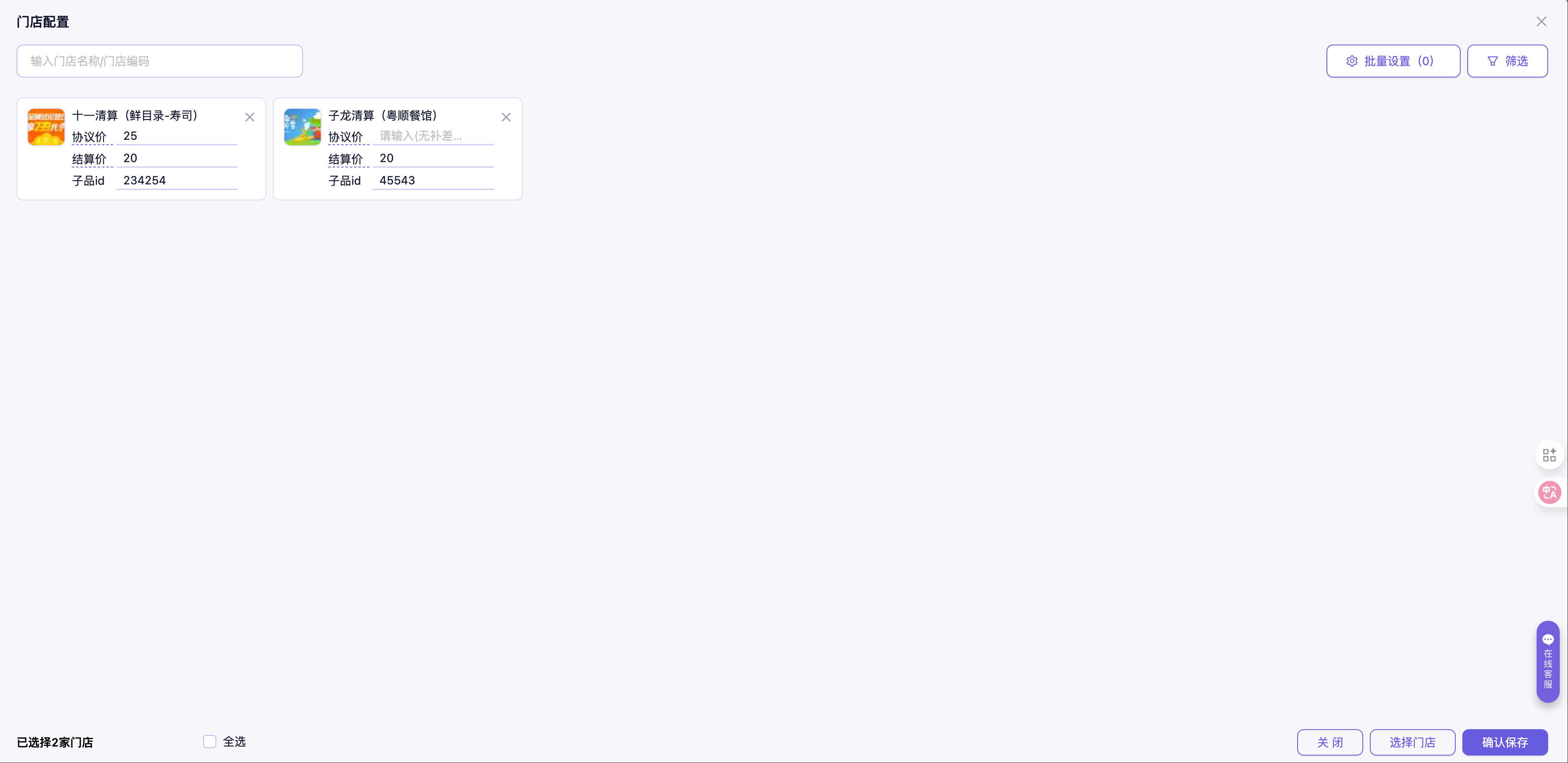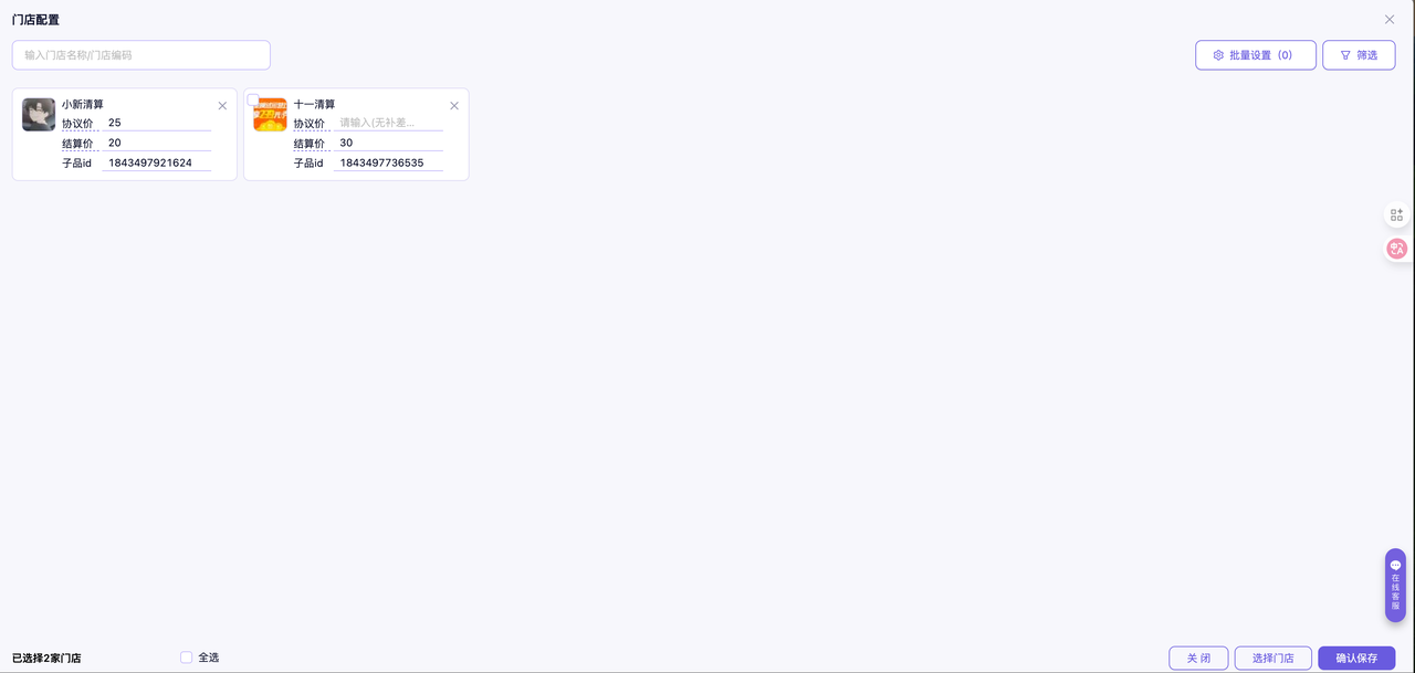 协议价:当商场给门店有补贴时,必须填写协议价。 协议价=给门店的补贴金额+卡券本身的结算金额。例如权益包中的某个子品采购价为90元,商场还会额外再向门店补贴5元,则协议价为95元。补贴的金额将通过补差单处理,并纳入月度补差账单进行管理和结算。若无补贴,则不填协议价。