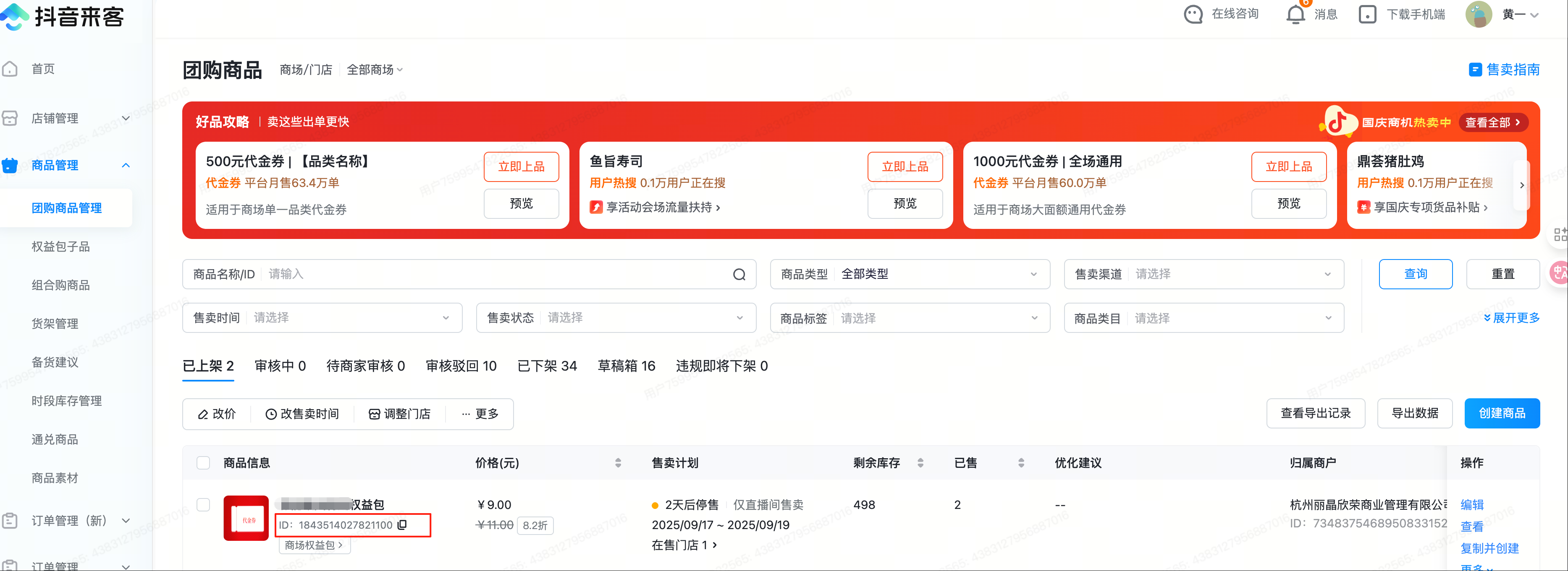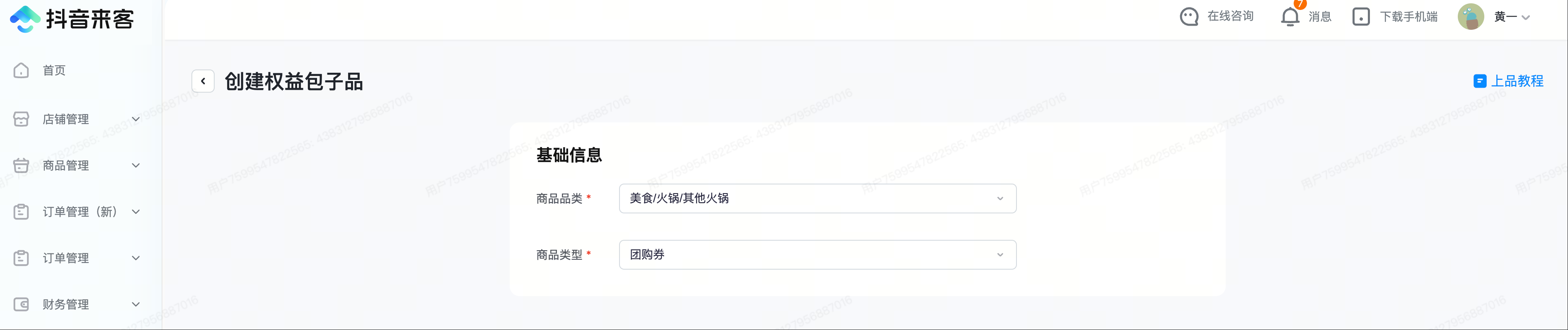 操作路径:商城——抖音原生团购——抖音原生商品,创建商品