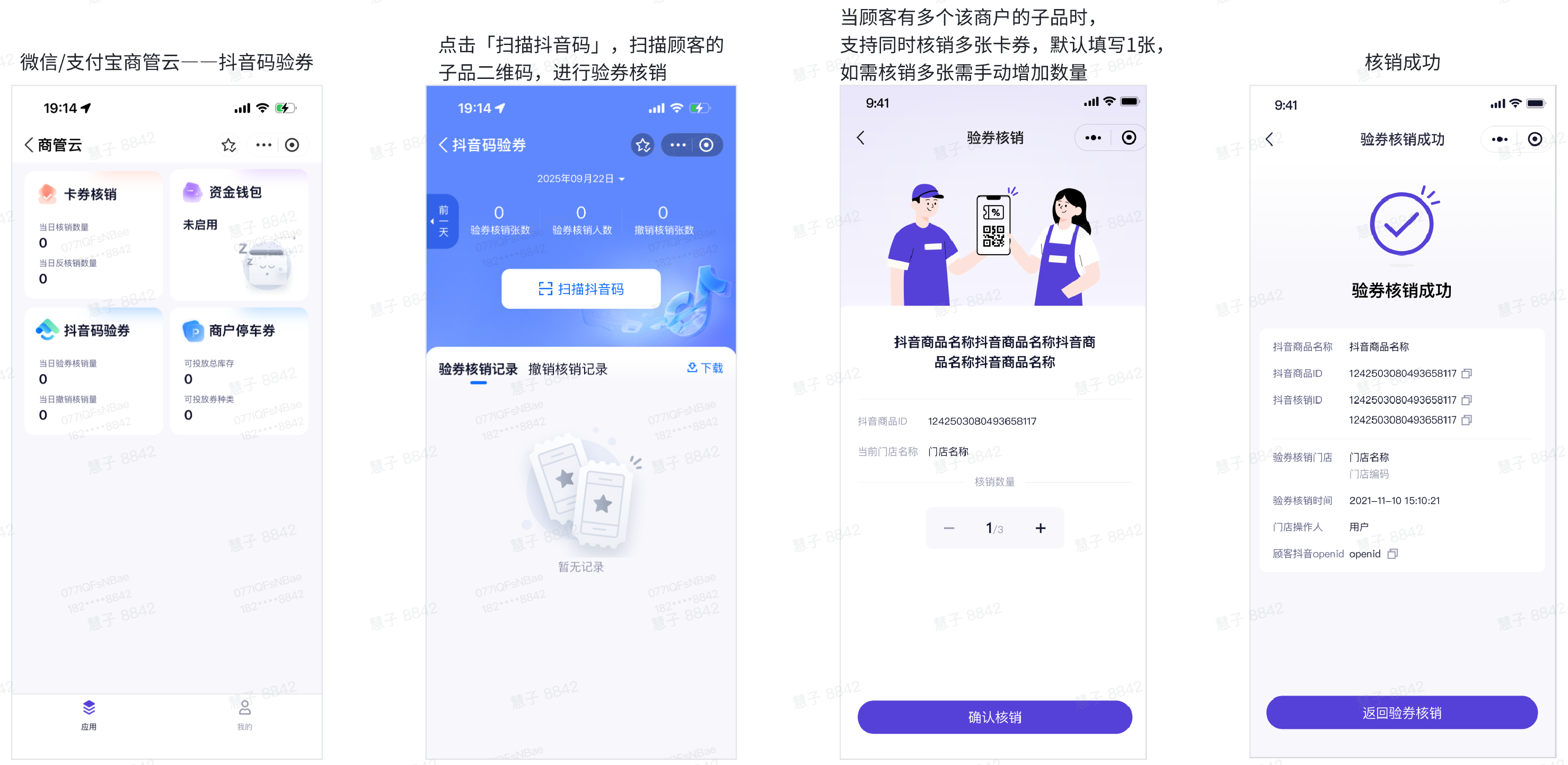 - 支持按照商场/核销门店/是否核销来筛选查看指定的验券核销明细