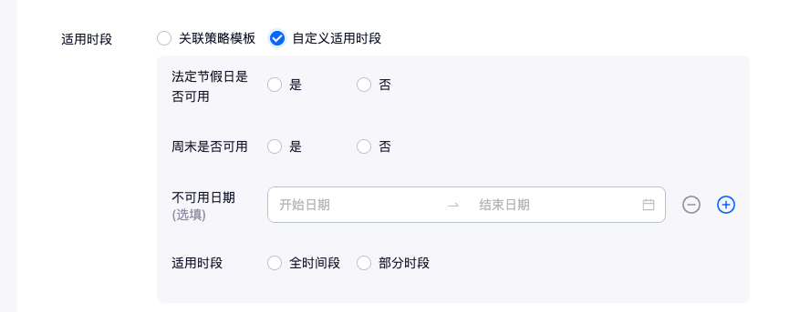 若适用信息未填写,则默认全部适用。