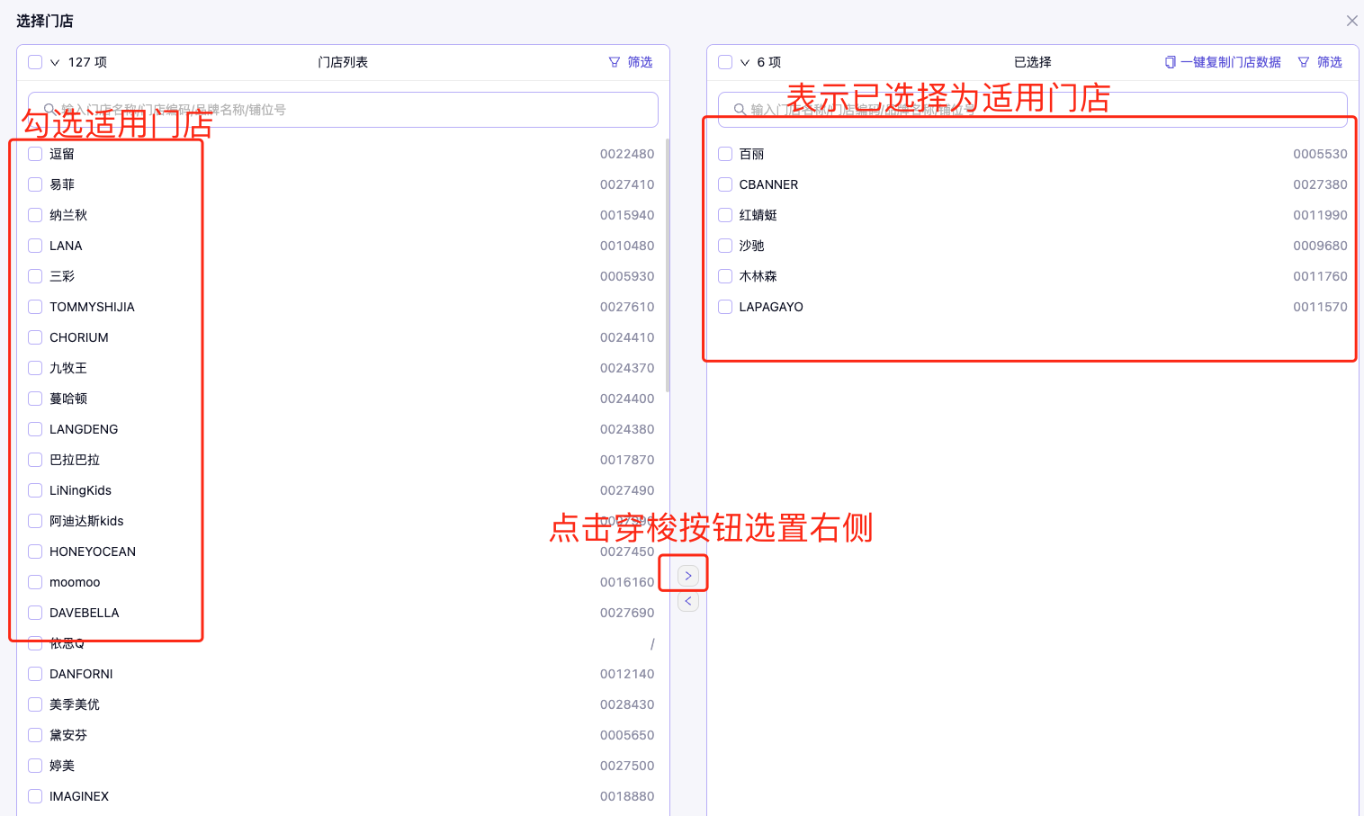 - 适用商场:填写商场编码,如"M001","M002"