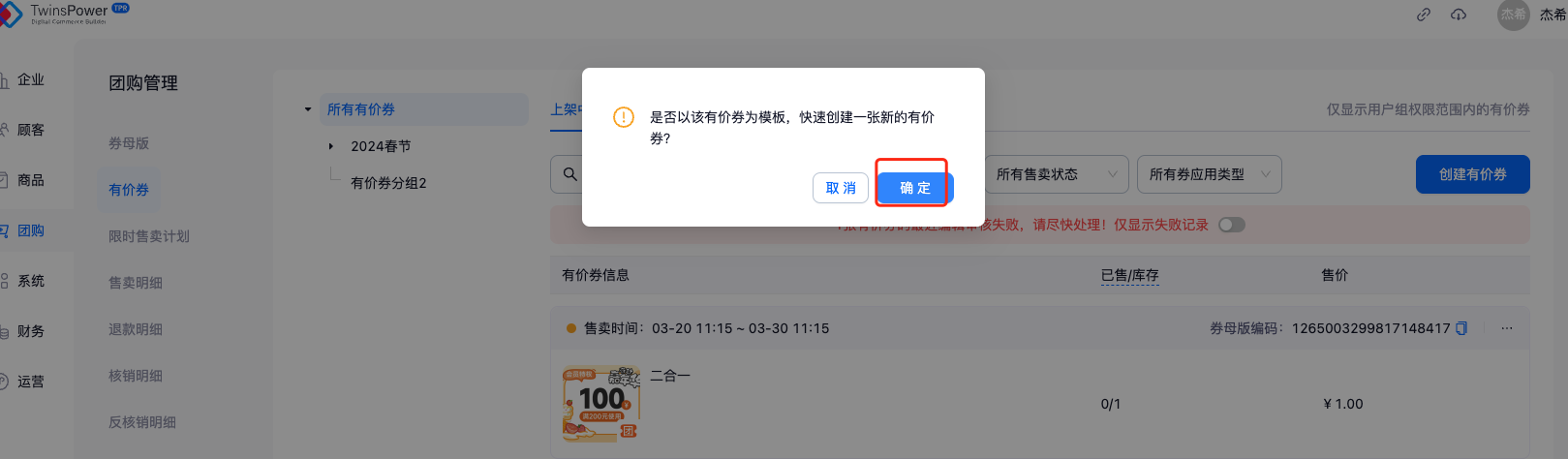- 过期券自动隐藏:系统每日会自动隐藏过期超过 7 天的有价券,避免券库数据过多、影响管理