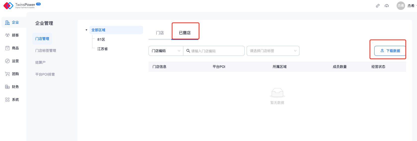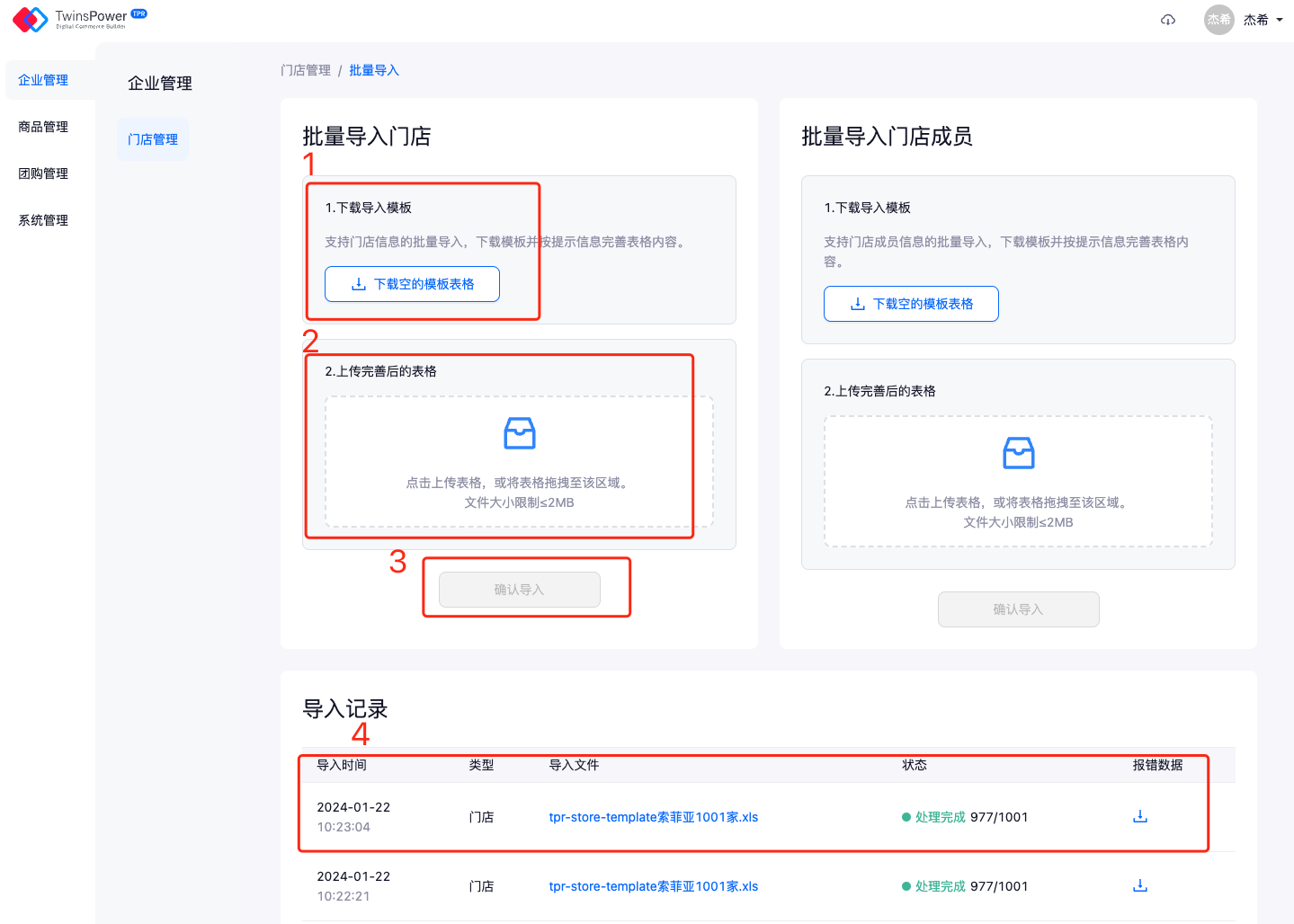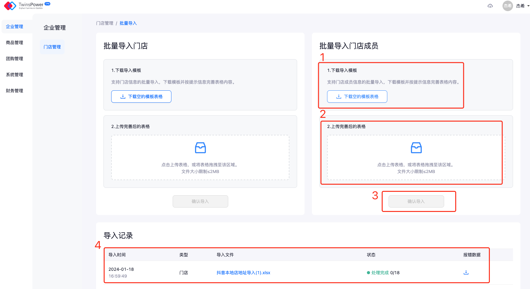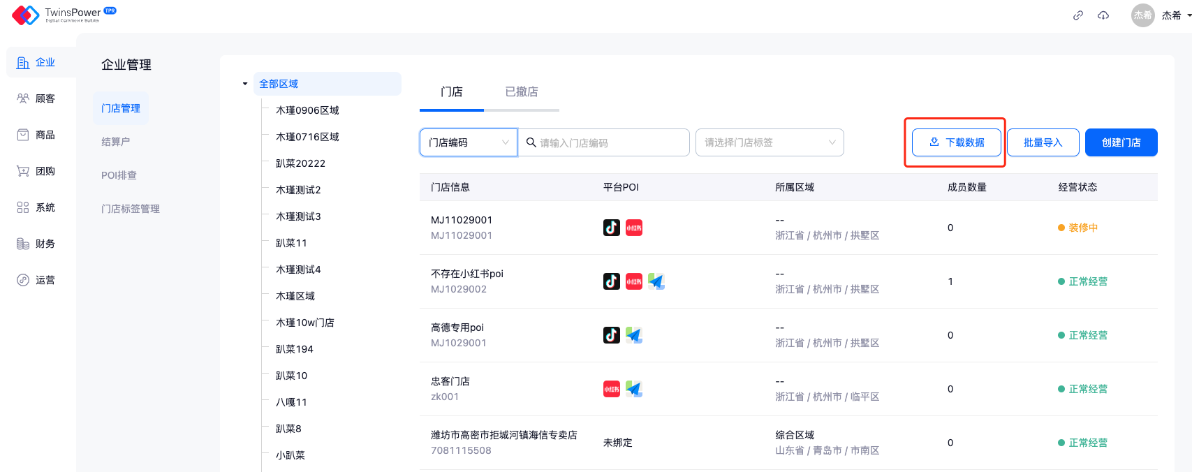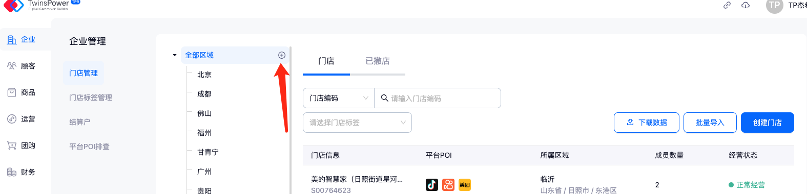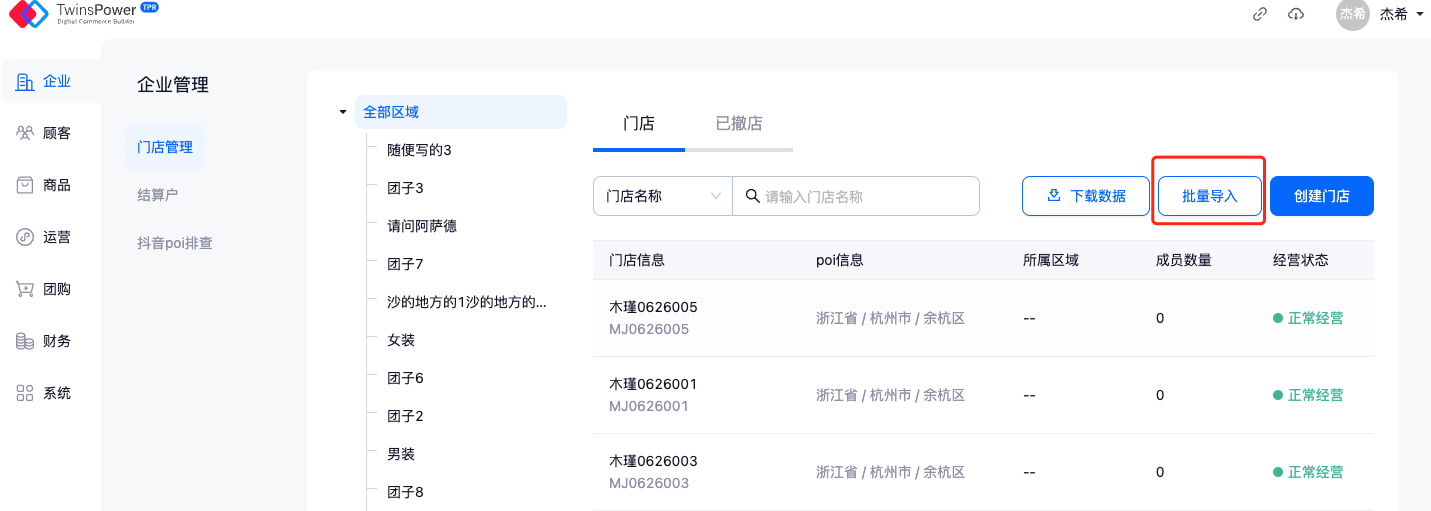 - 批量导入门店更高效:在批量导入门店时,可直接导入门店所属区域