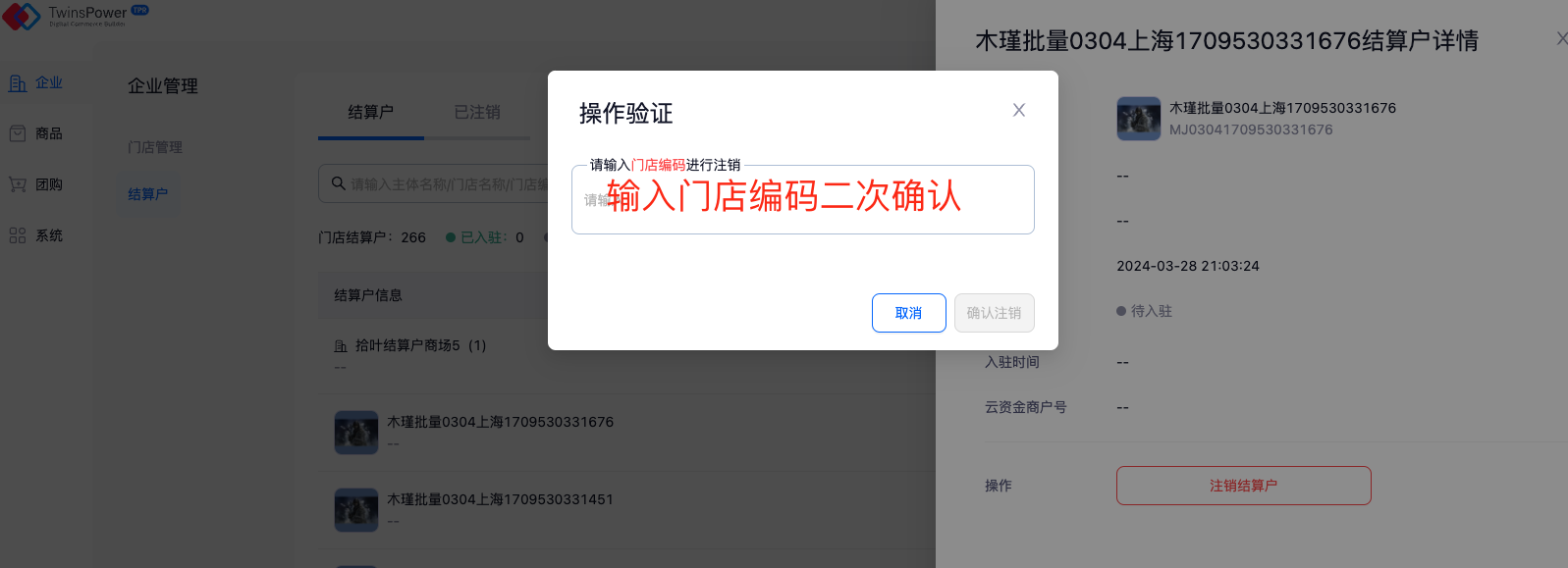 - 🏚门店撤店(建议等完成所有待结算之后再注销)