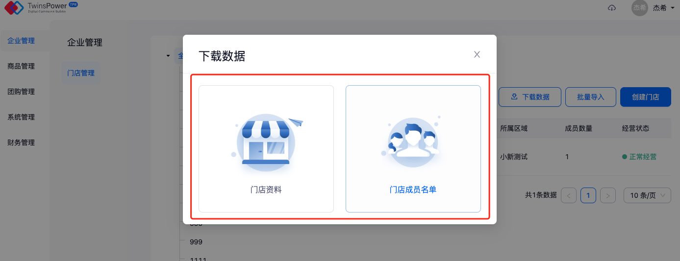 - 进入门店列表,选择门店,确认创建。系统将自动创建