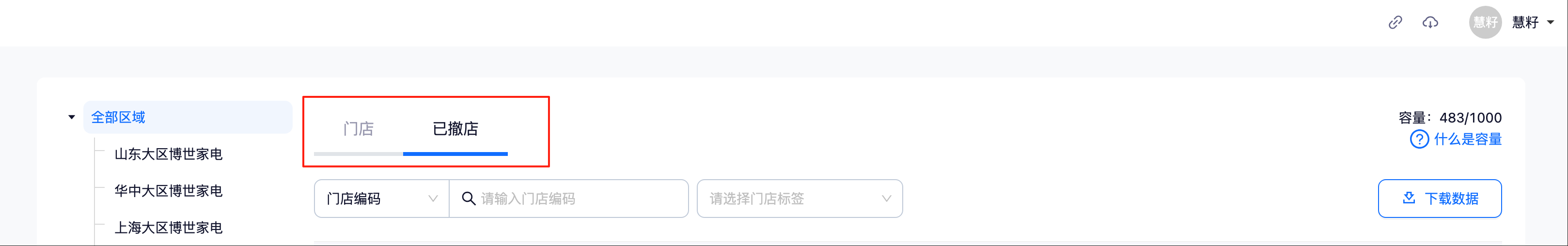 因为经营中的门店和已撤店门店是分页展示的,如在「门店」列表页未搜索到该门店编码,可在「已撤店」列表中进行搜索。