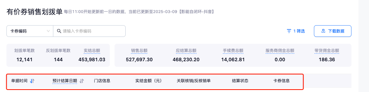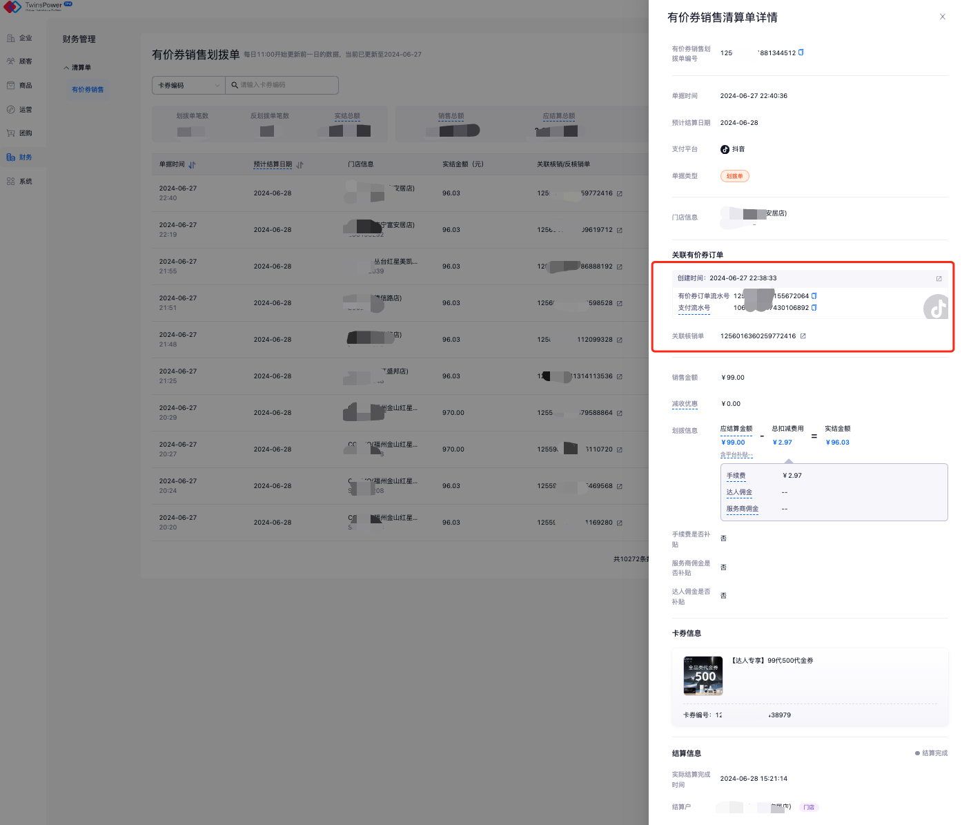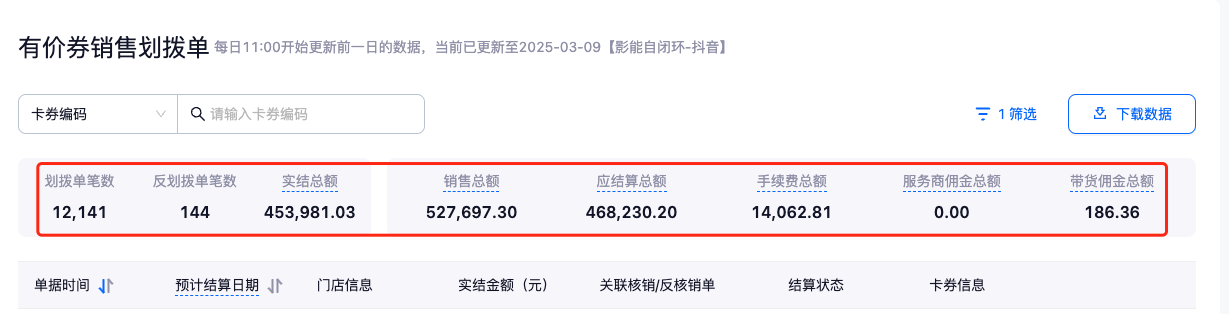 你可以在此处快速确认:👉 每一笔券的资金是否已经打到对应门店的结算户。