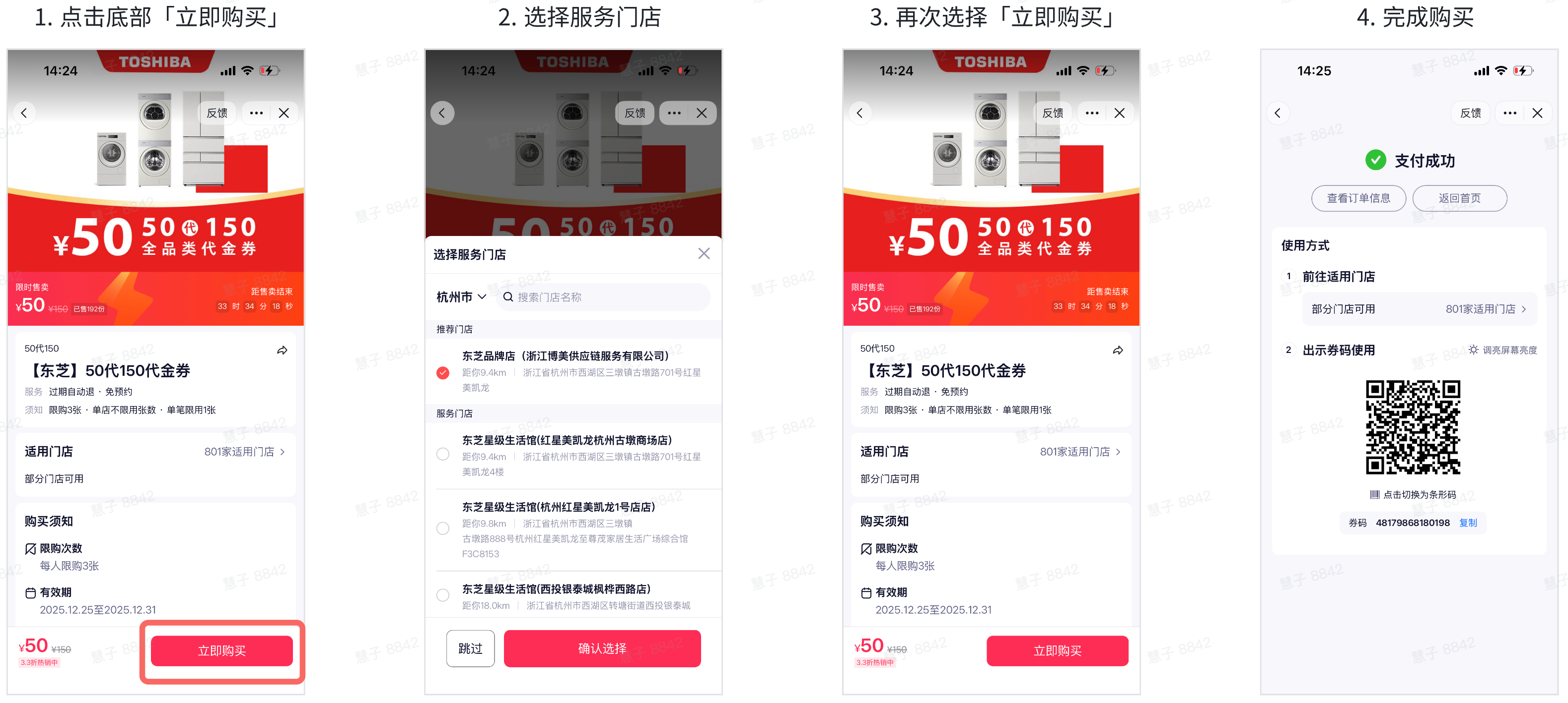 若开启【服务门店引导选择】,顾客购买商品流程如下: