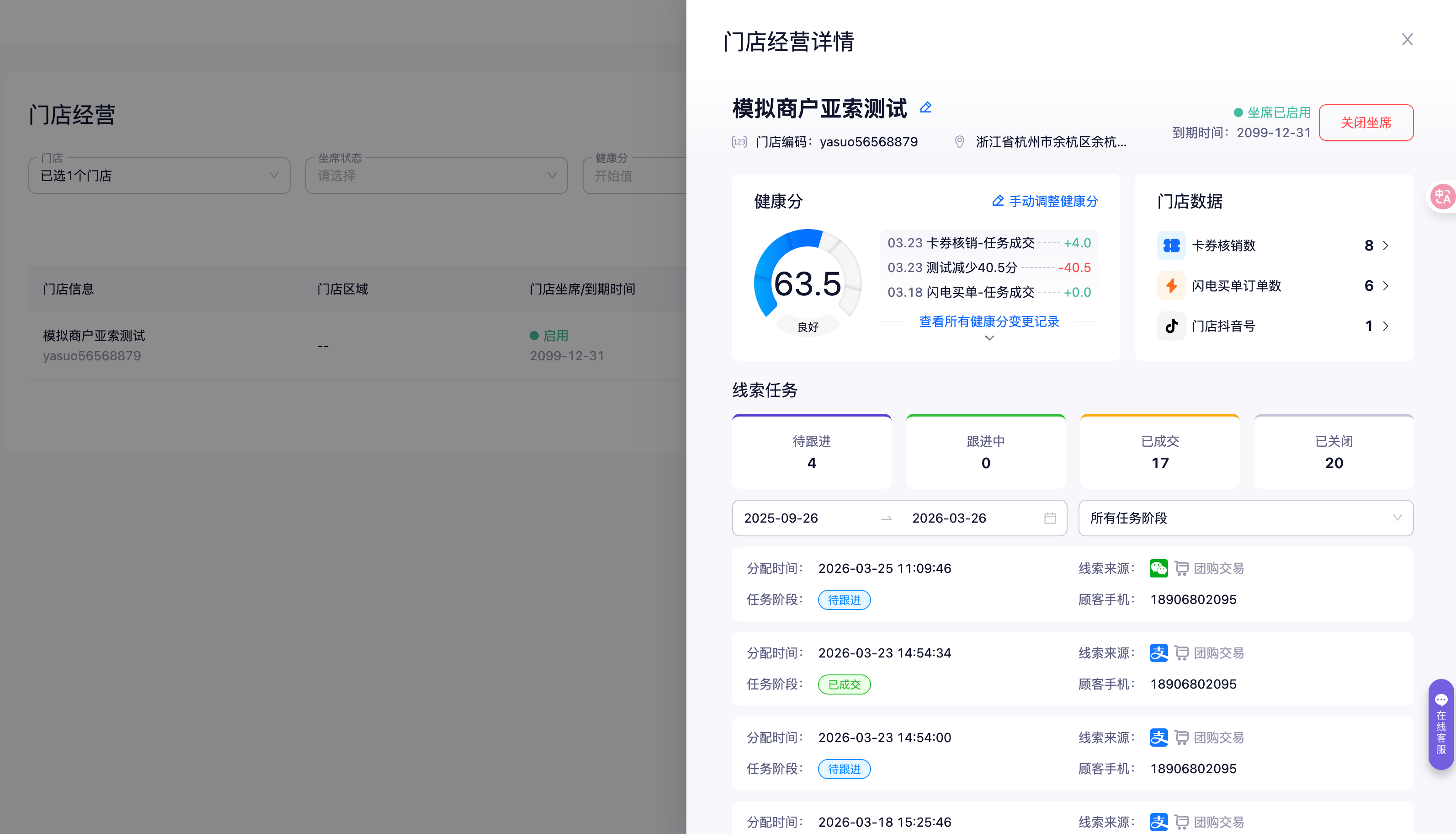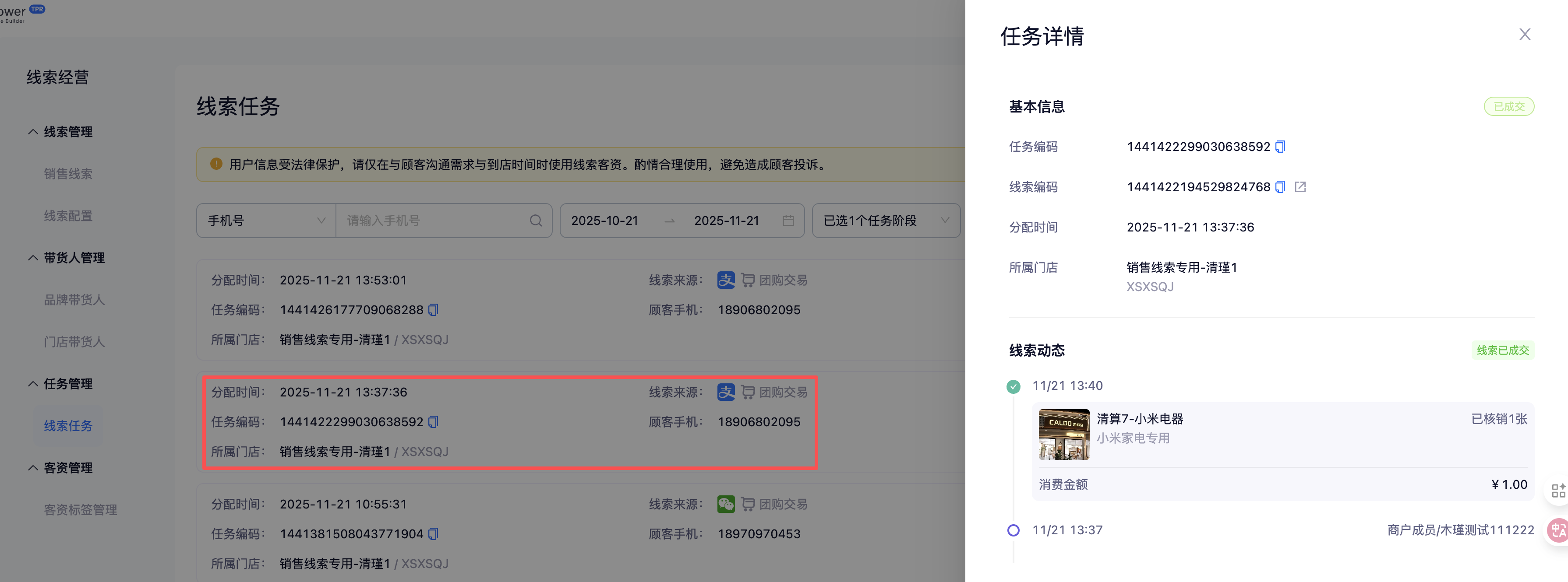 🔐权限说明:商户后台成员仅可查看自己所管辖门店的线索任务。