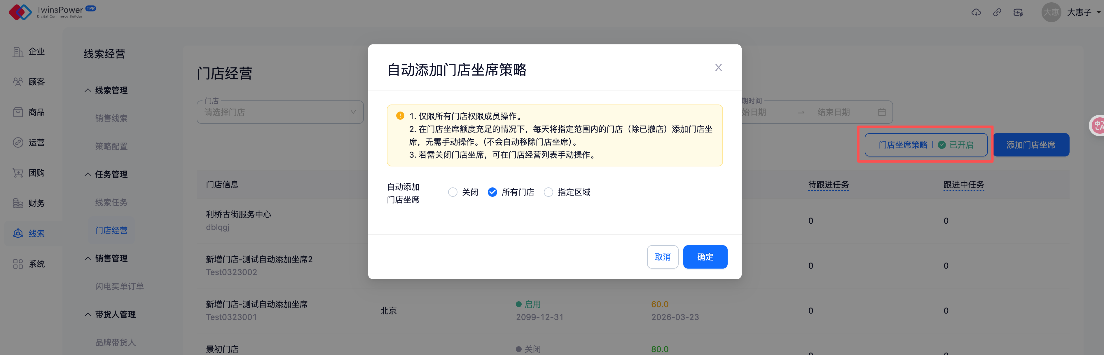 💡 建议:开启“全部门店自动添加”,避免遗漏门店影响线索承接。
