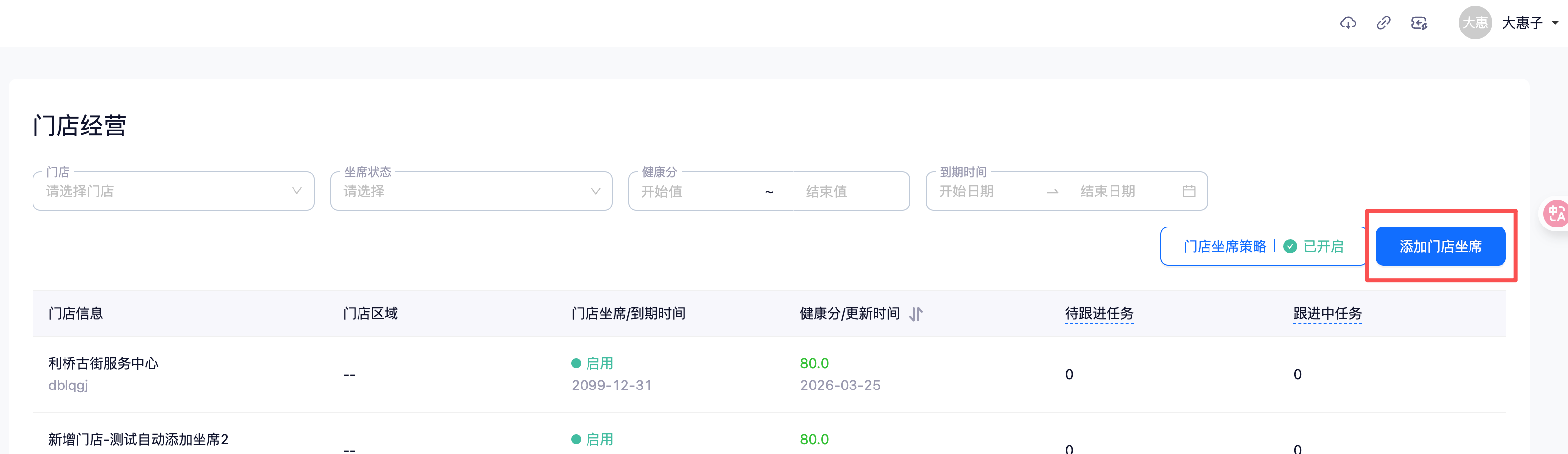 - 在门店坐席额度充足的情况下,系统可每日自动为指定范围内的门店开通坐席(已撤店门店除外);
