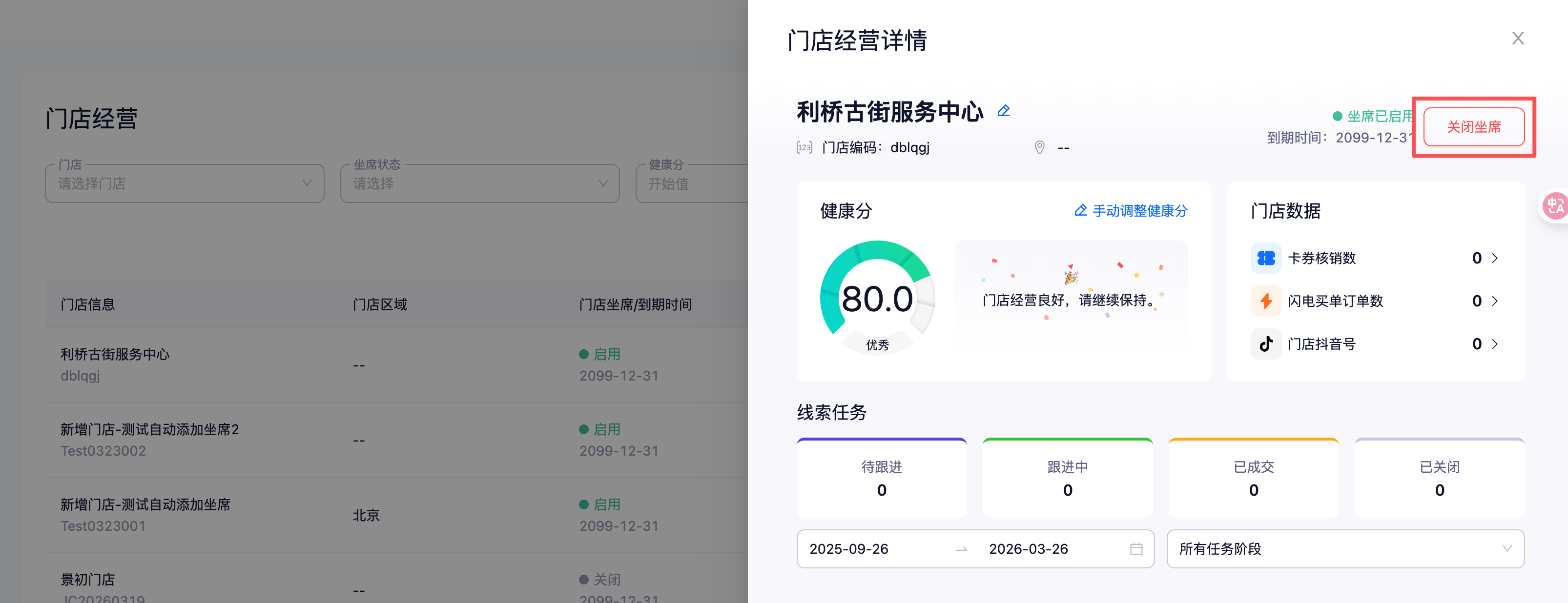 - 门店管理:仅开启「门店经营」的门店,才可参与线索任务分配;