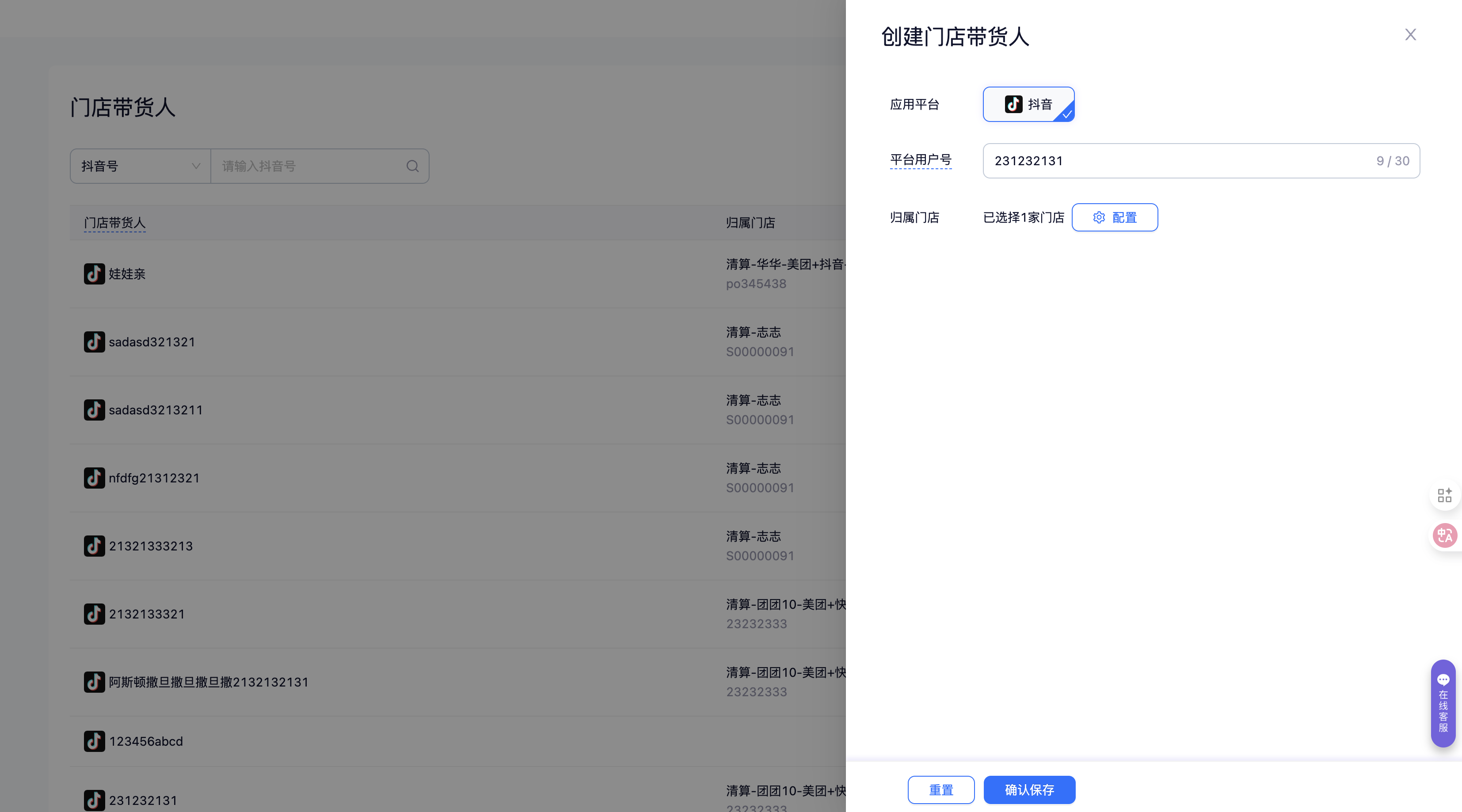 - 下载模板表格,表中需填写对应平台(抖音)、平台用户号(抖音号)、所属门店编码