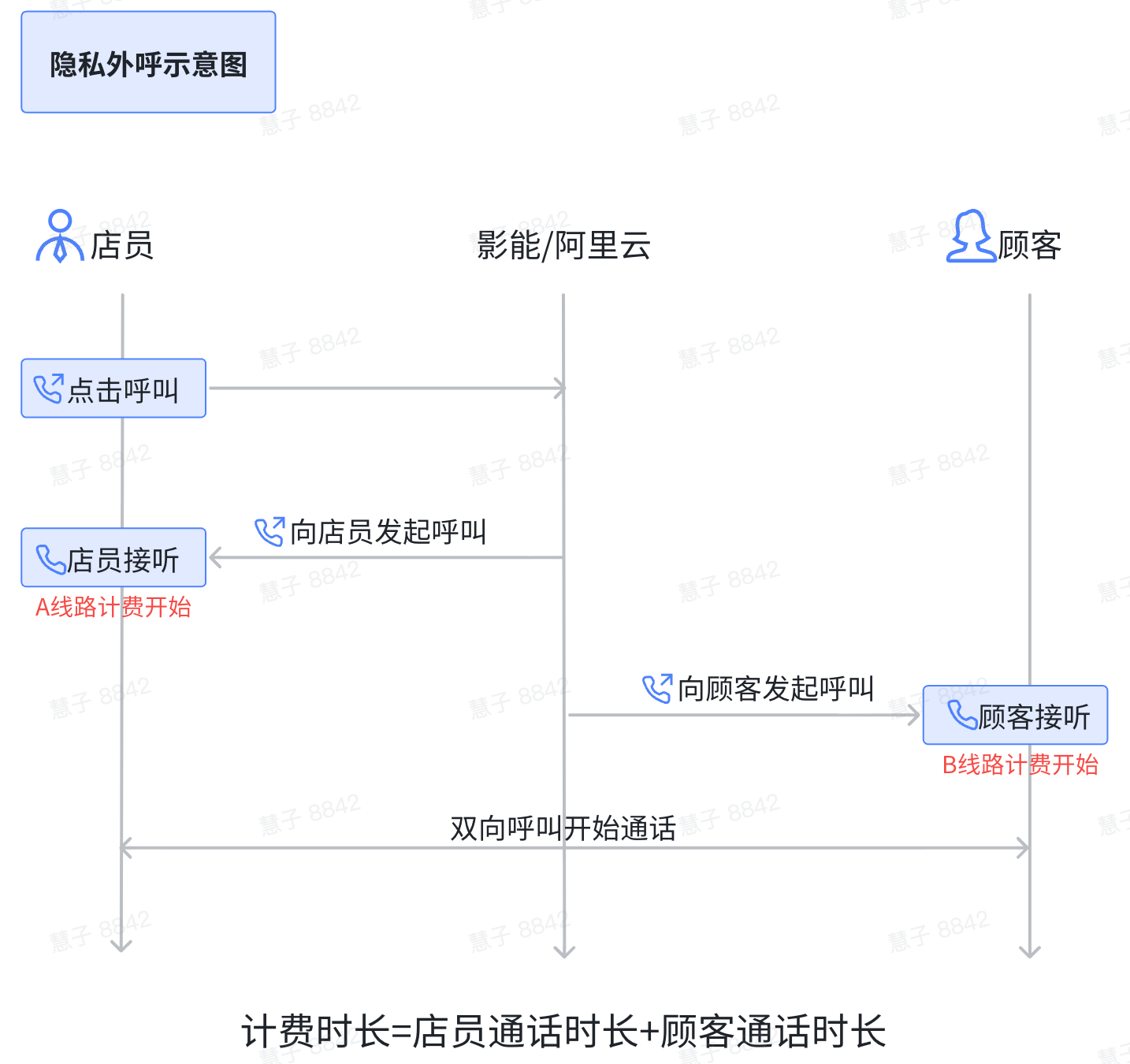 店员在商管云点击拨打电话后,系统基于阿里云能力,同时向店员端与顾客端发起呼叫,双方接通后建立通话。