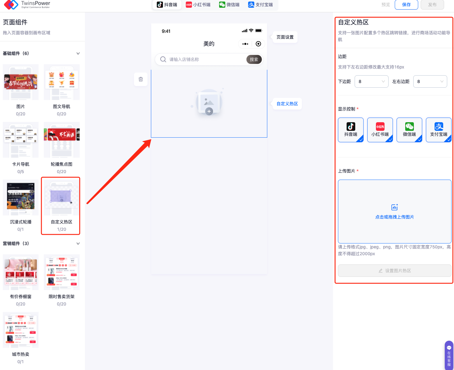 支持一张图片配置多个热区跳转链接,进行商场活动功能导航