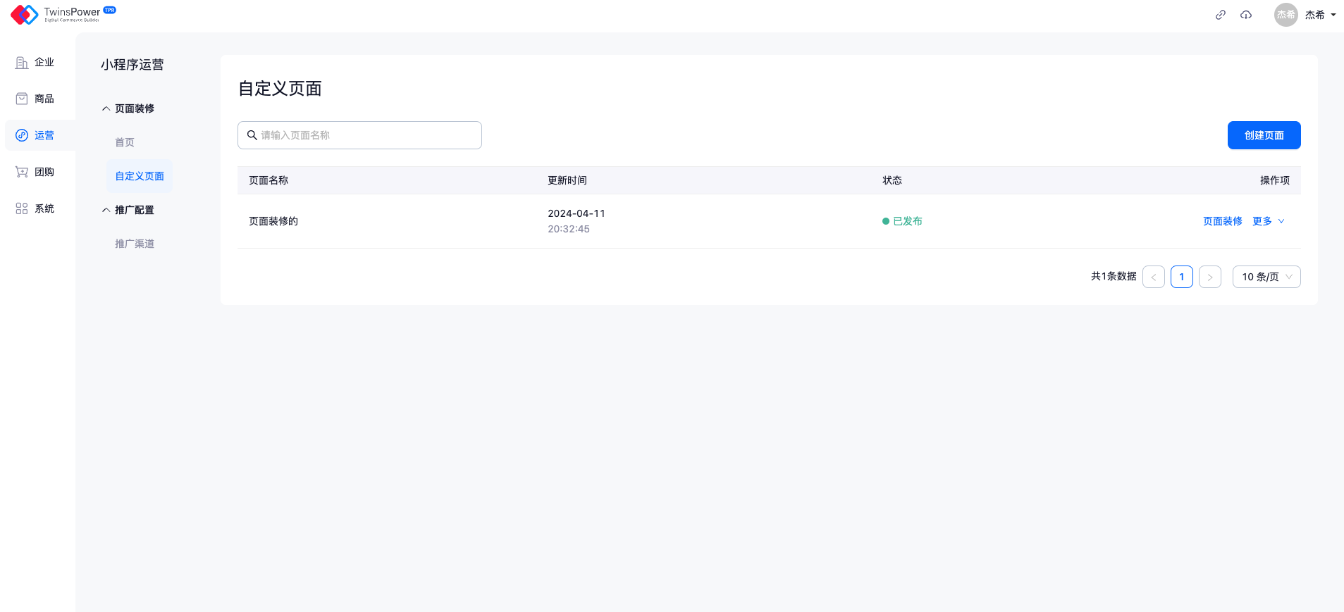 - 点击「页面装修」,进入装修页面