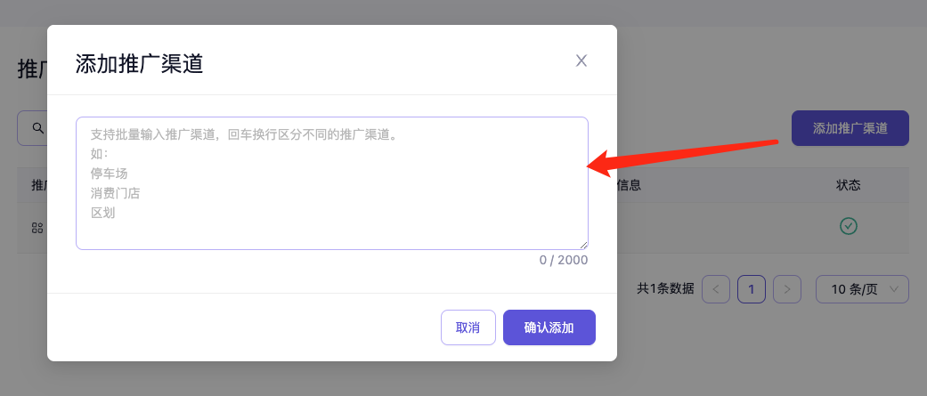 - 支持批量输入推广渠道,需要用回车换行来区分不同的推广渠道