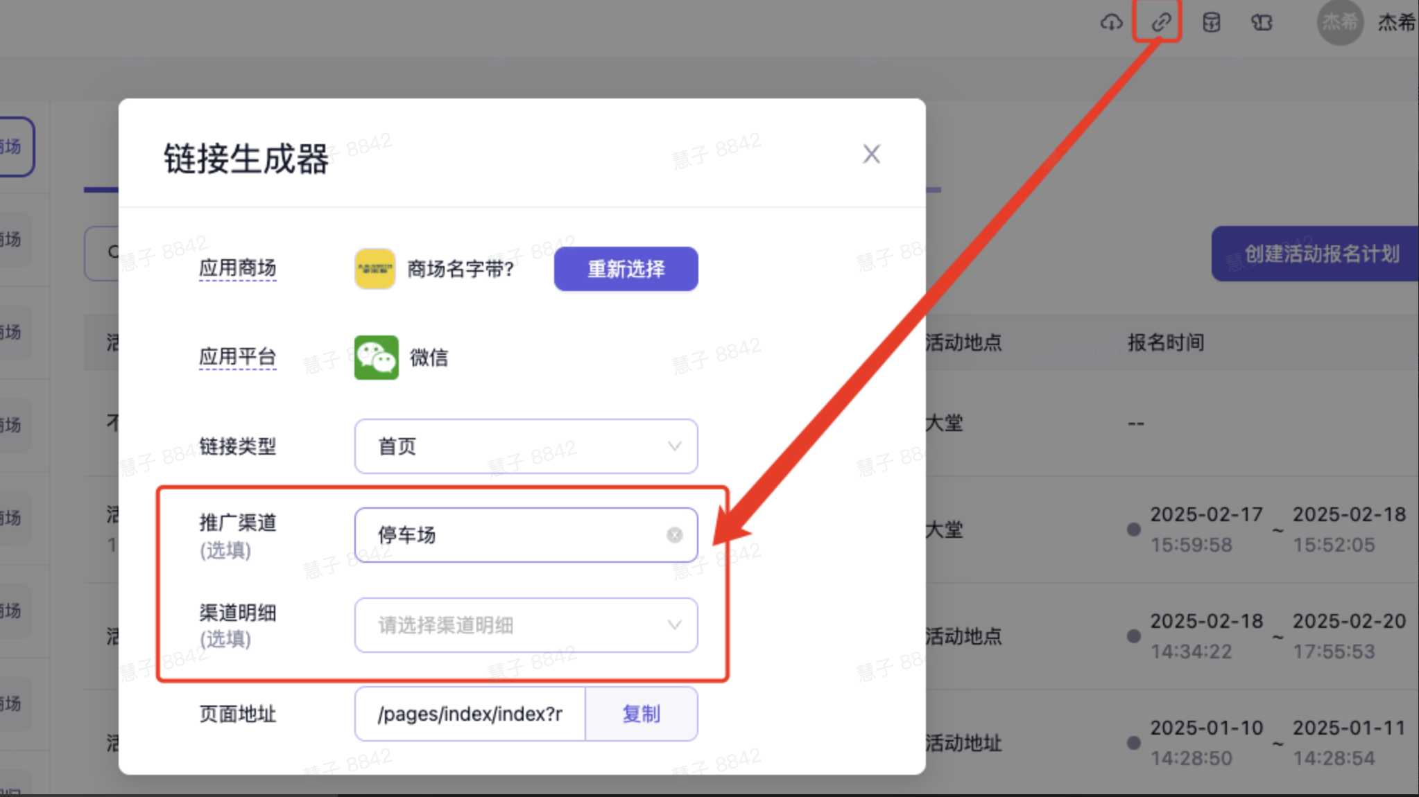 可在通过链接生成器提取小程序链接,配置到公众号或其他平台时,可在该链接中添加推广渠道,从而可知晓有多少用户是通过该种方式参与活动的。