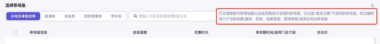- 积分货架/免费券展架中无法选择已创建的券母版