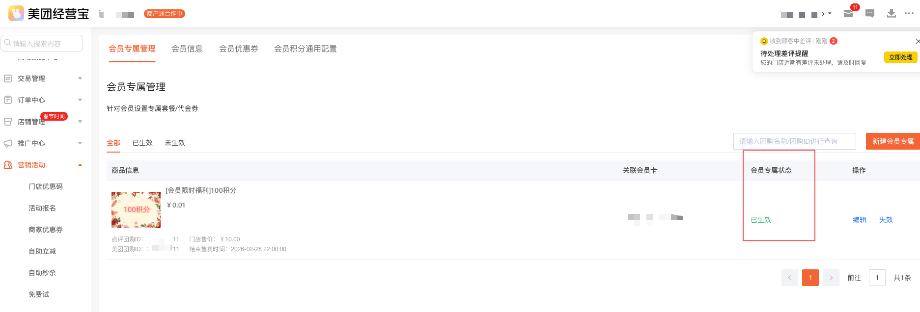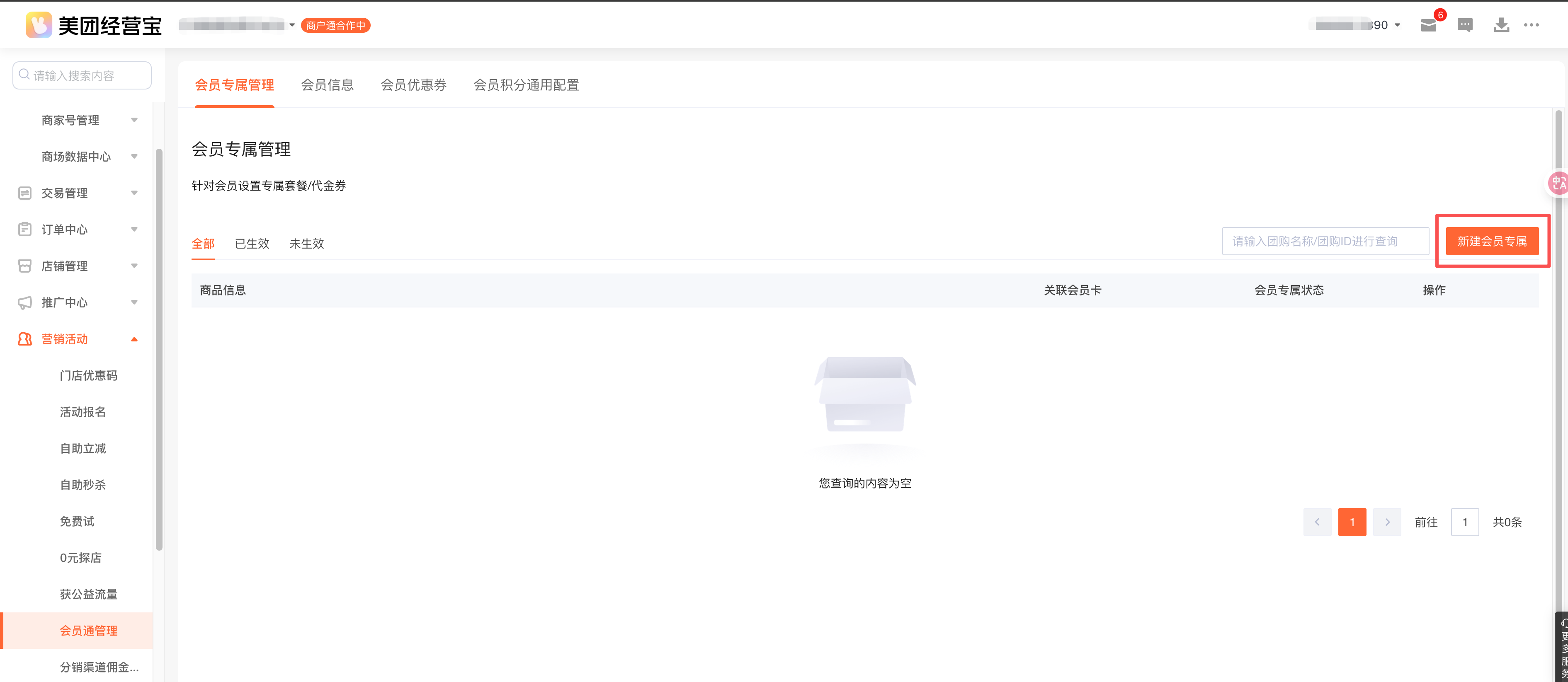 📍操作路径:美团开店宝PC——营销活动——会员通管理——会员专属管理——新建会员专属