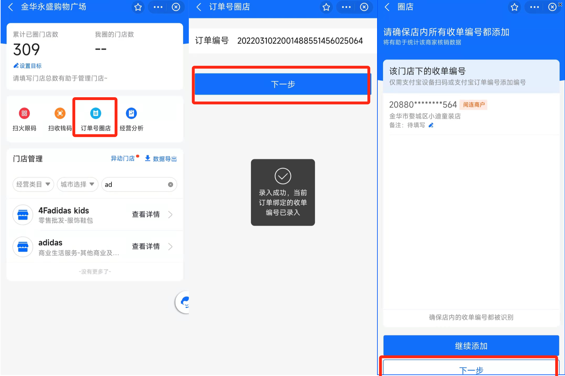 说明没有圈店,则使用“订单号圈店”进行圈店,流程如下: