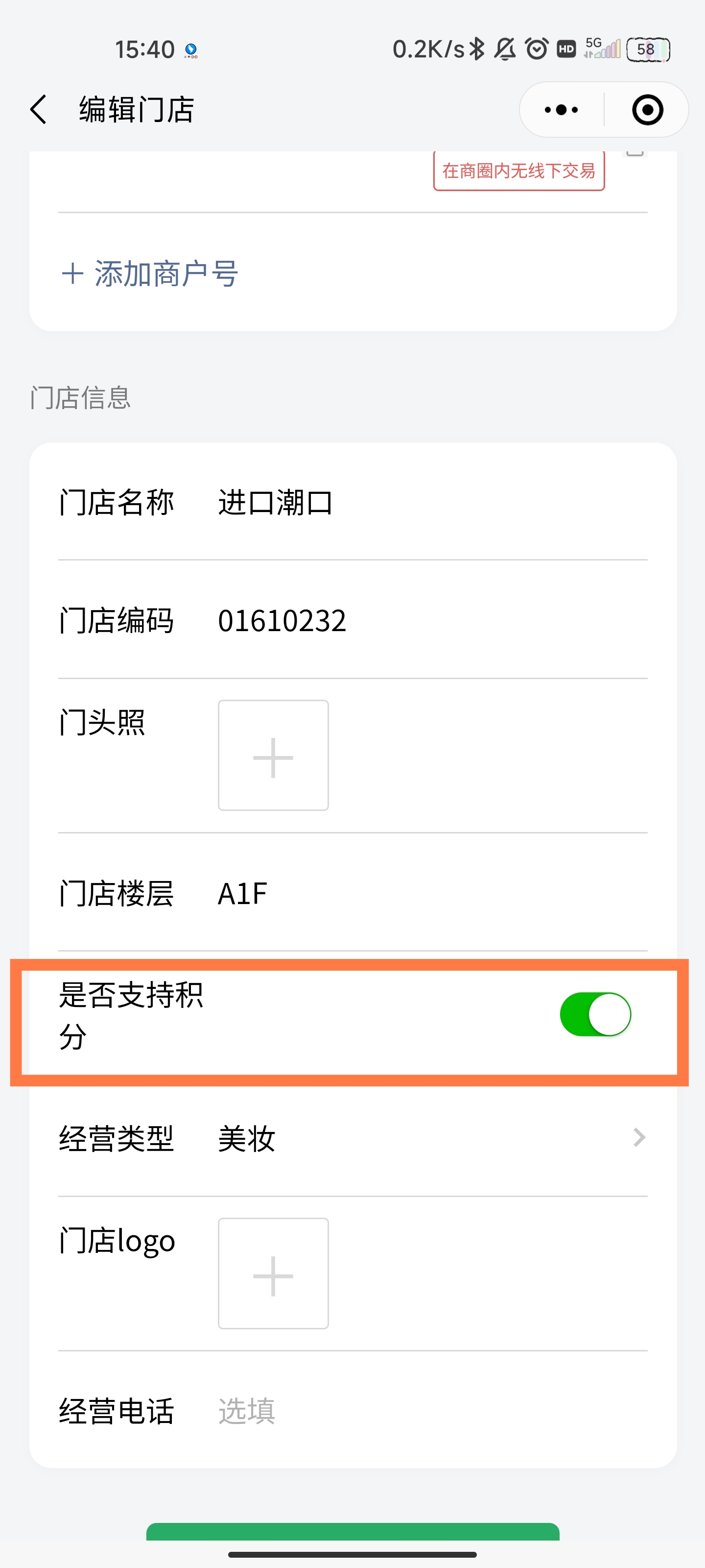 - 看“是否支持积分”是否开启,如没有开启需要将它开启,如果已开启可以先关闭再开启,第二天再测试一下微信支付