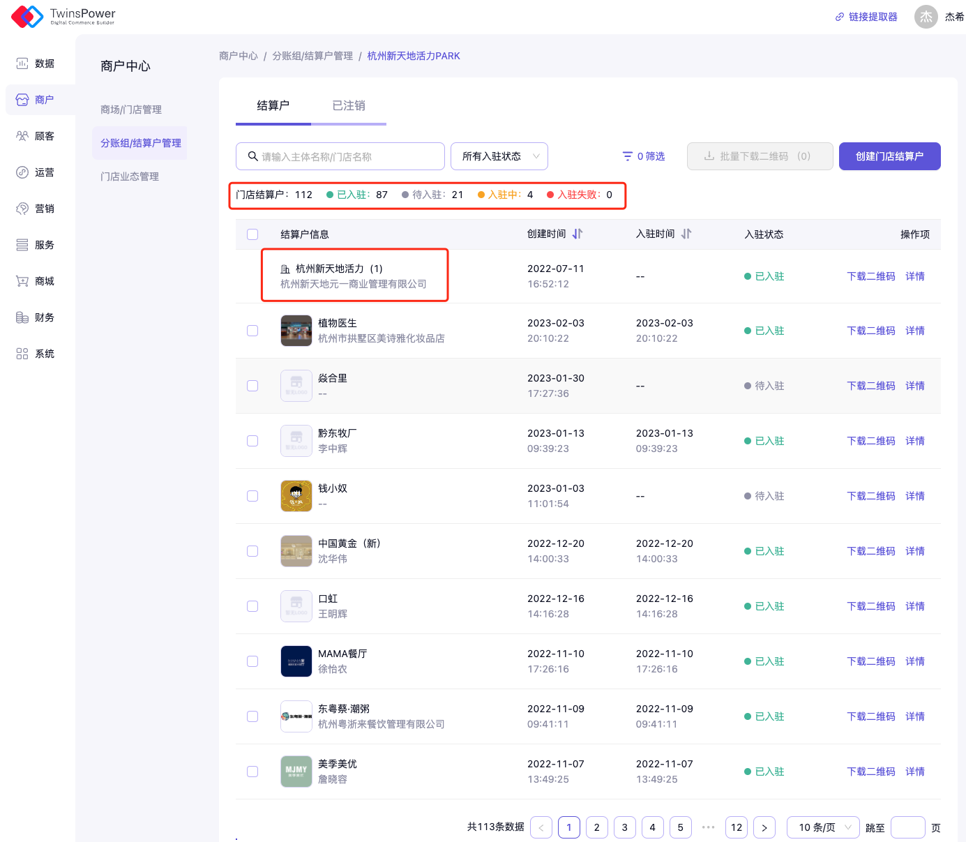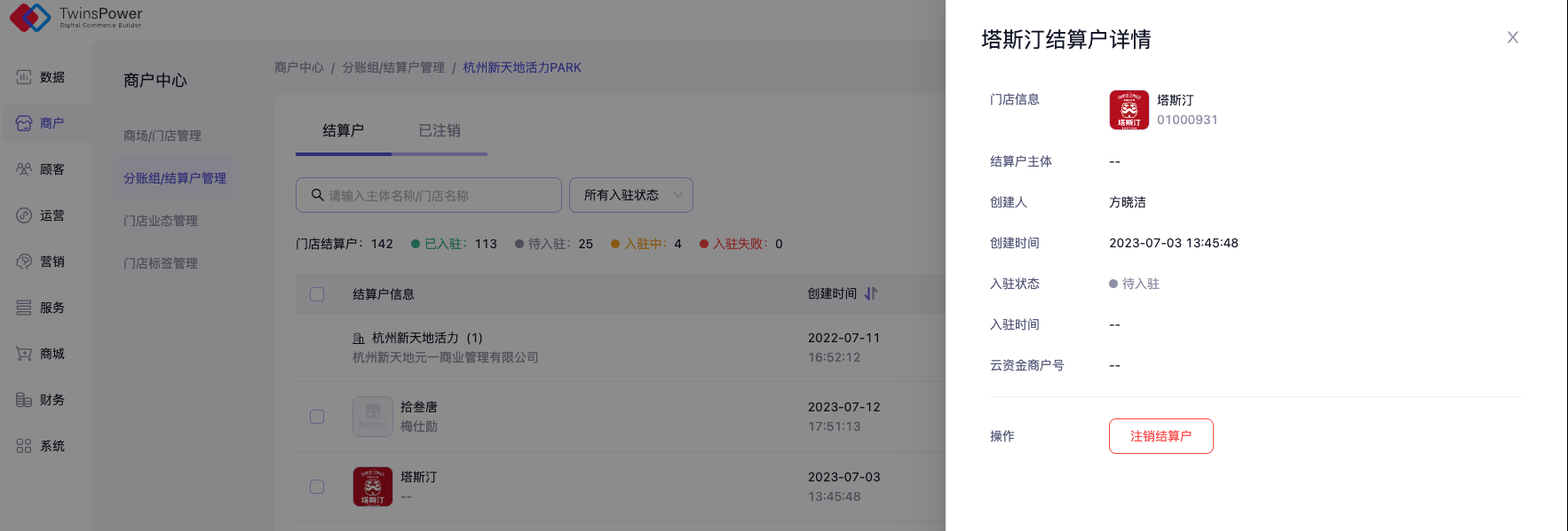 - 支持数据概览,可以快速知晓门店结算户的入驻数据