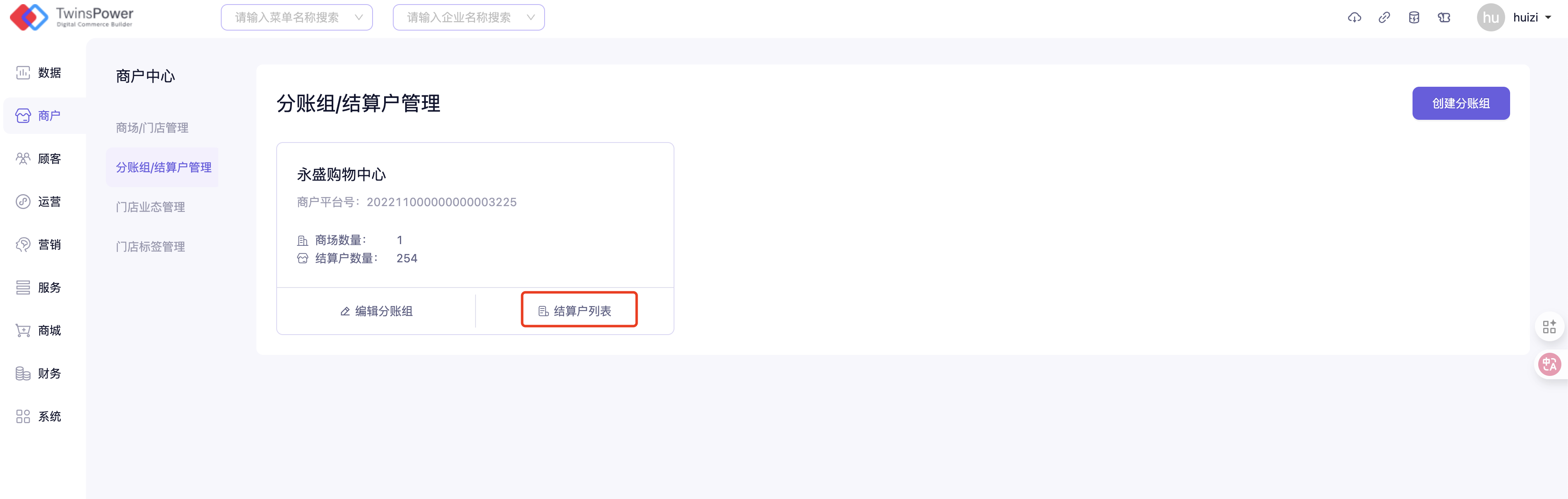 分账组&结算户管理