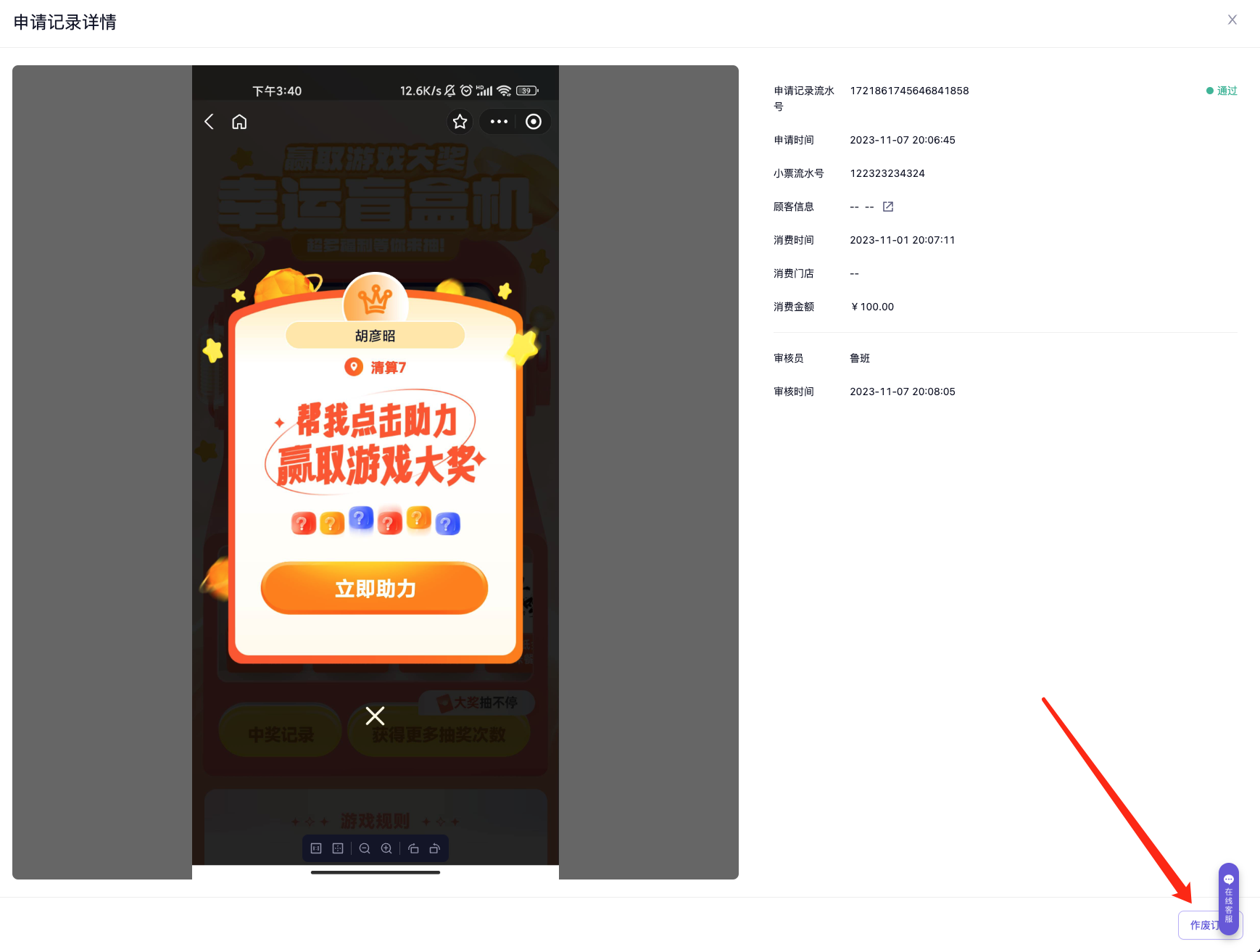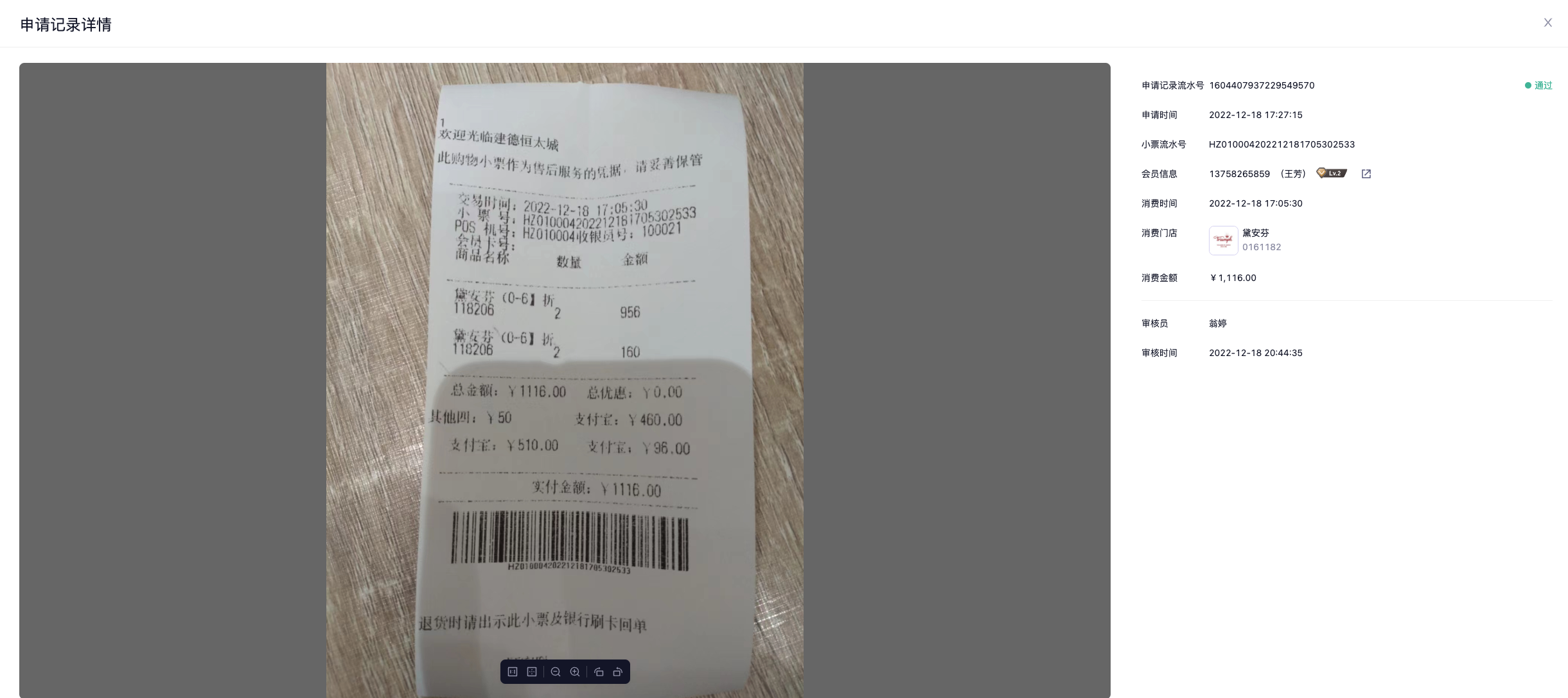 在此可查看顾客上传的小票信息,并完成审核操作。