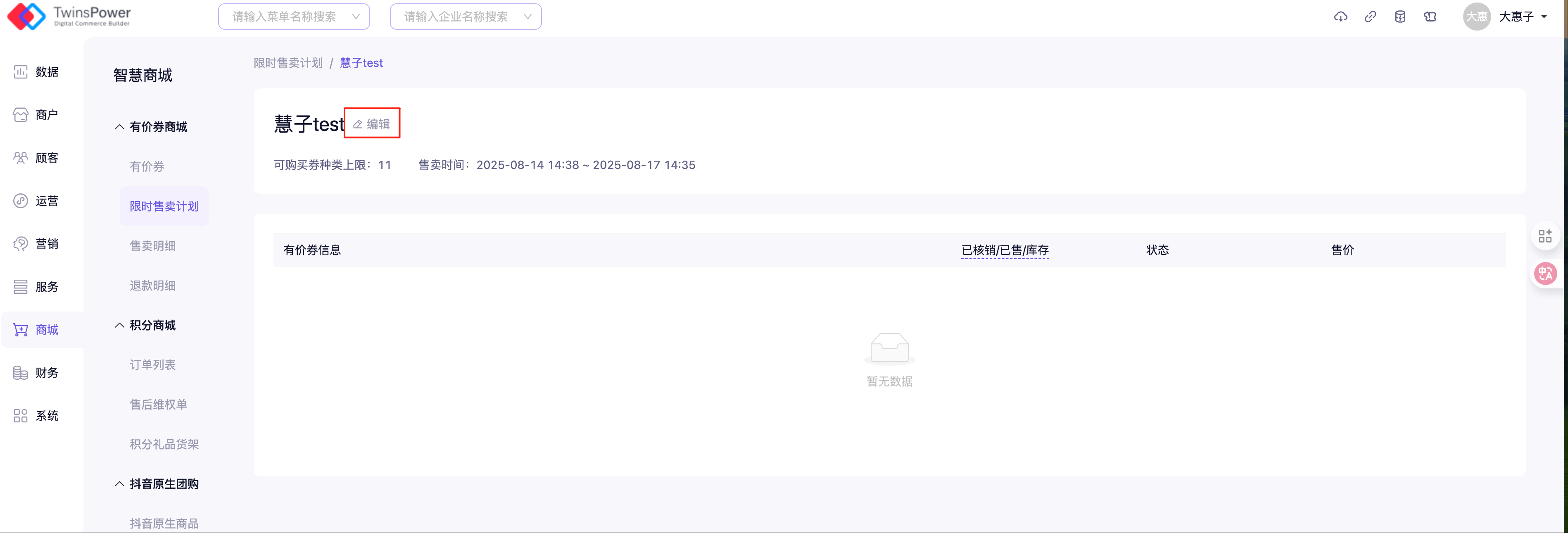 - 若限时售卖计划的时间还处于进行中,则可以编辑基本信息