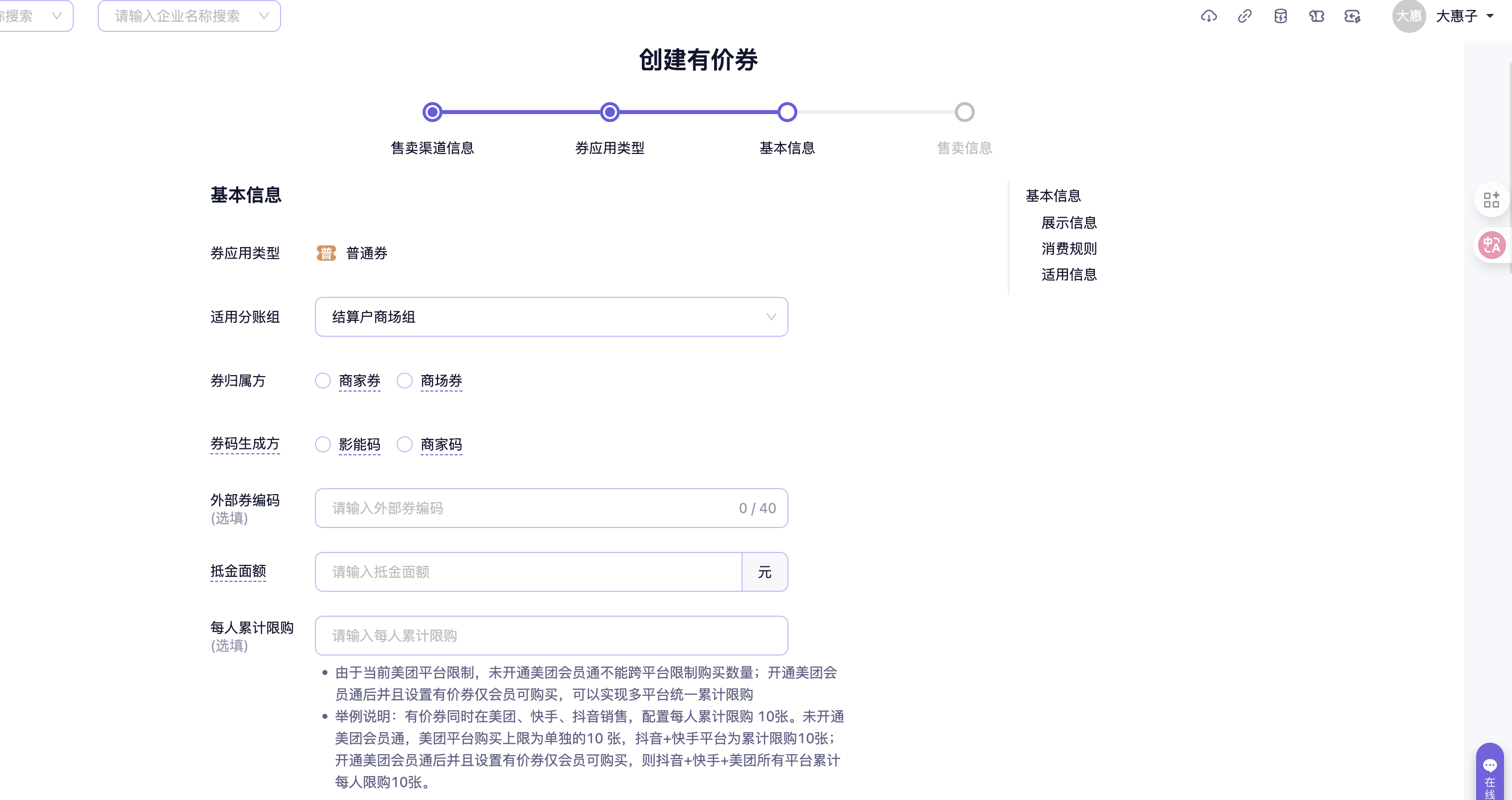 - 外部券编码(选填):当对接了外部券时需要填入外部券编码